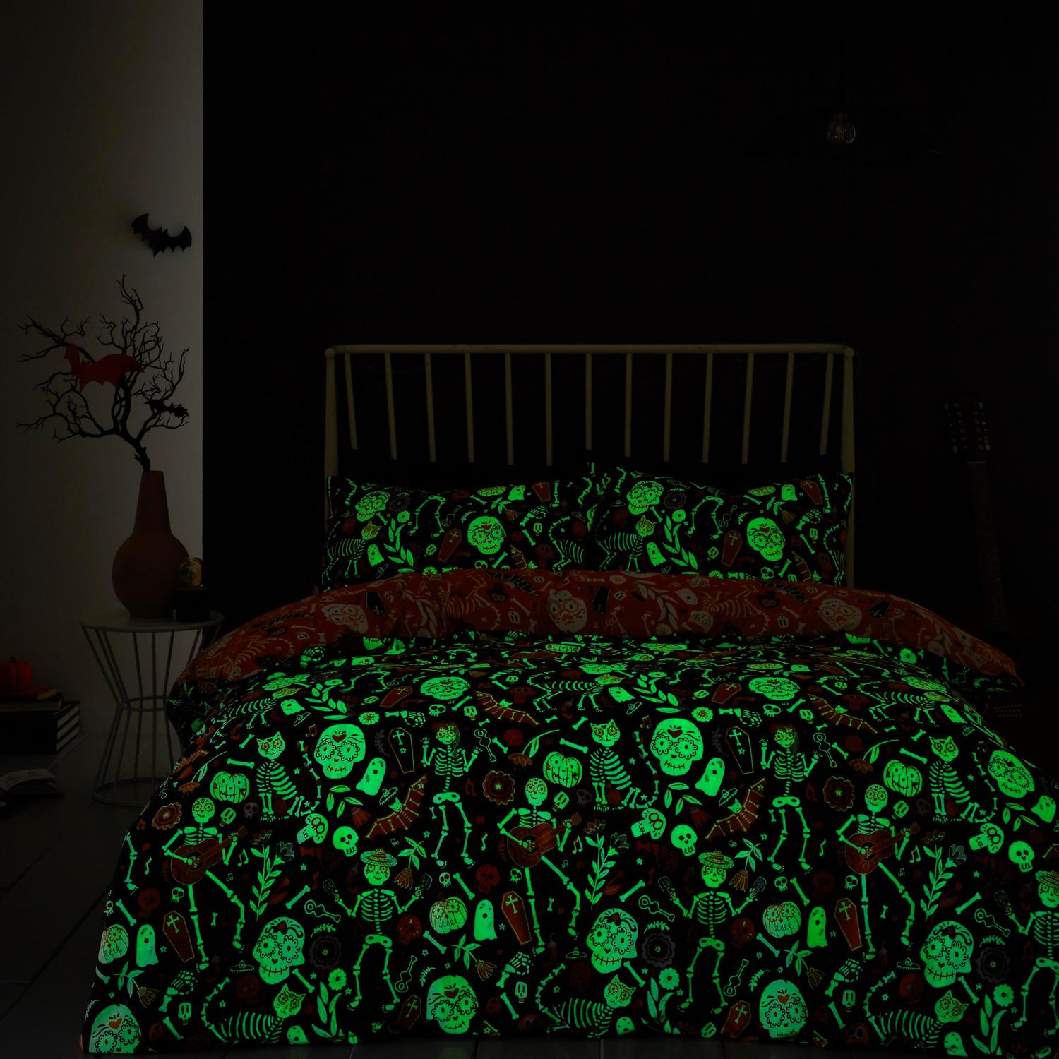 Halloween Day of the Dead Glow in the Dark Duvet Cover Set