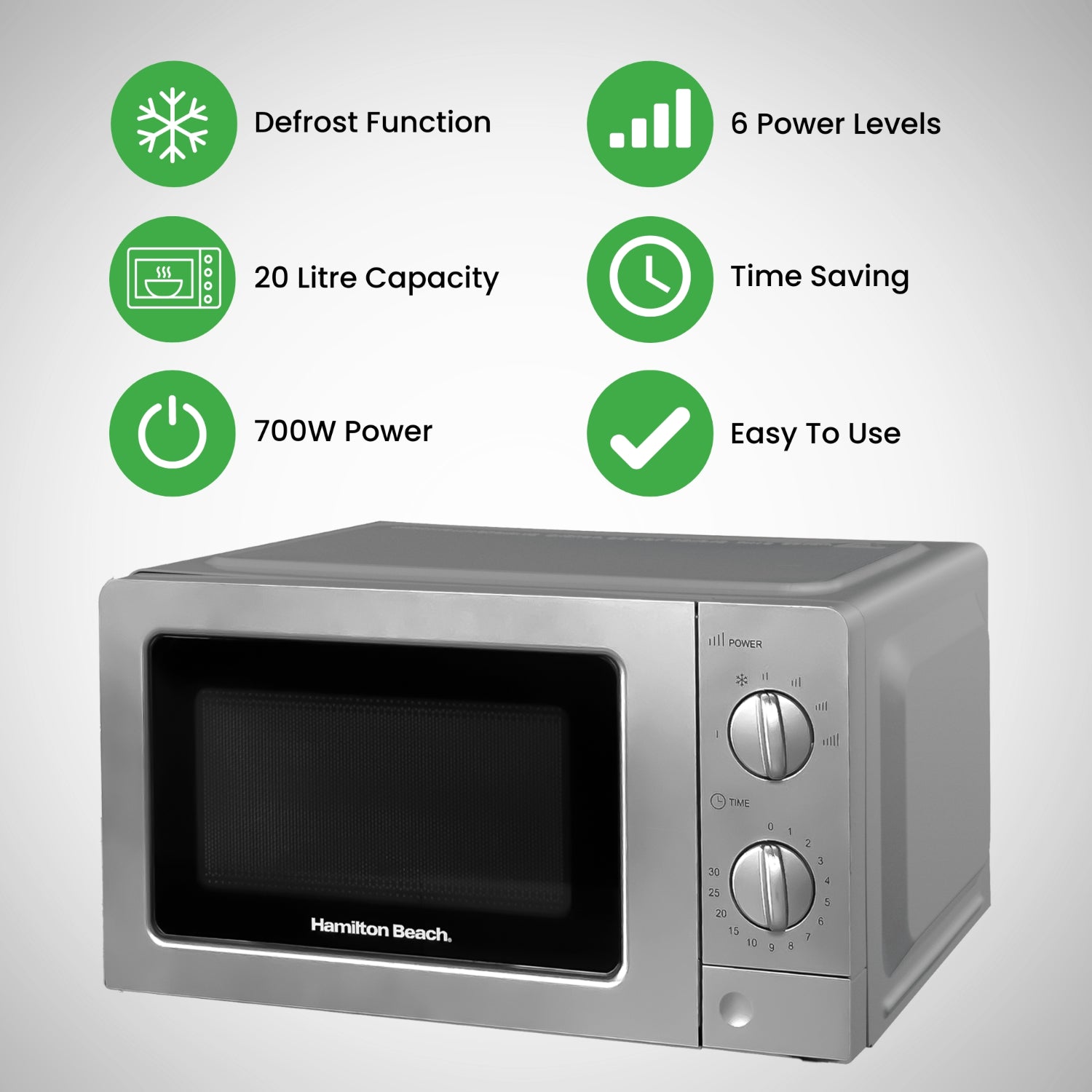 Hamilton Beach Silver 700W 20L Microwave With Glass Door