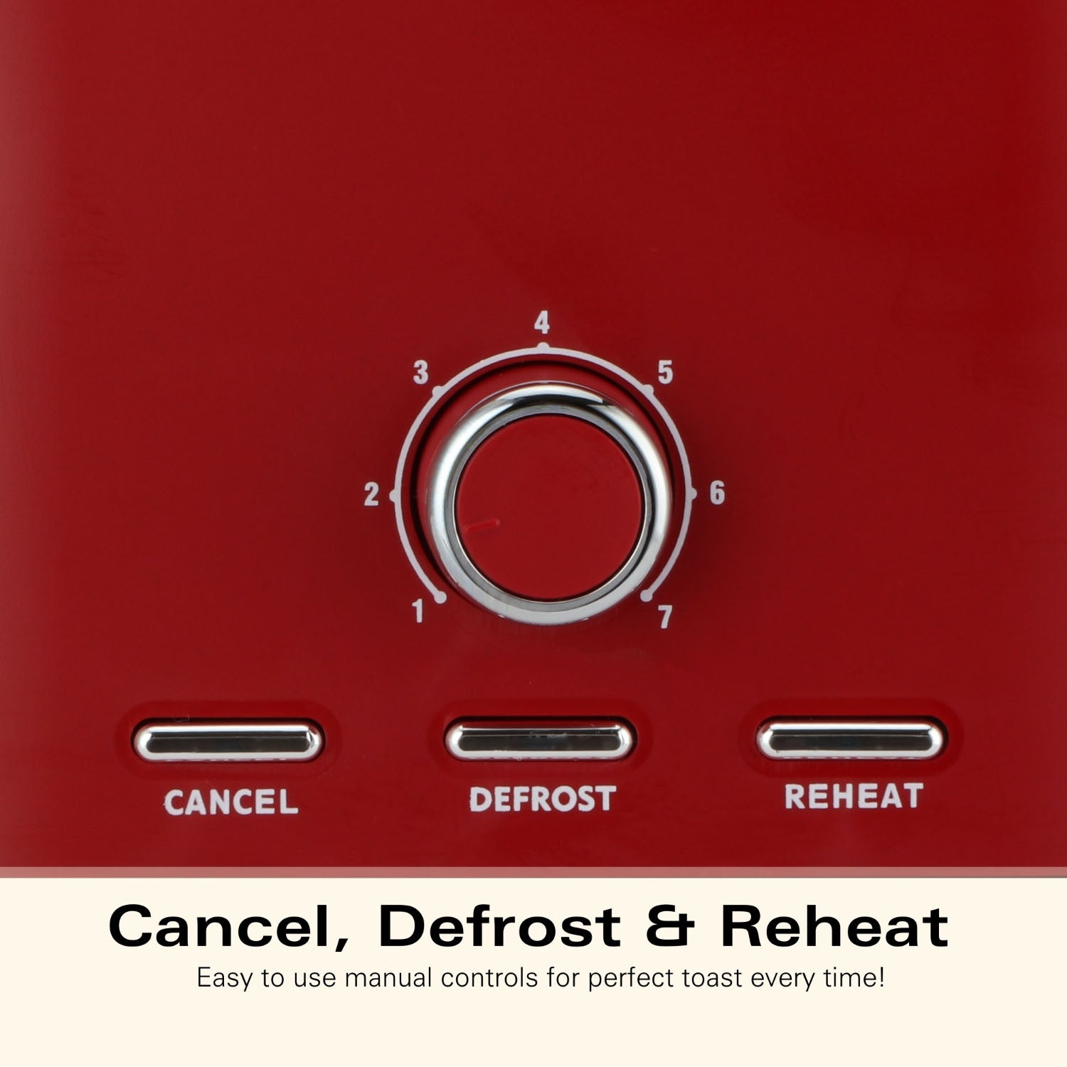 2 SLICE TOASTER: With 7 variable browning levels, choose your perfect toast effortlessly. The removable crumb tray and integrated cord storage ensure easy cleaning and a tidy workspace. Enjoy even and crisp toasting with 800W power, and the wide slots are ideal for thick-sliced bread and bagels. Benefit from the convenient defrost, cancel and reheat settings.