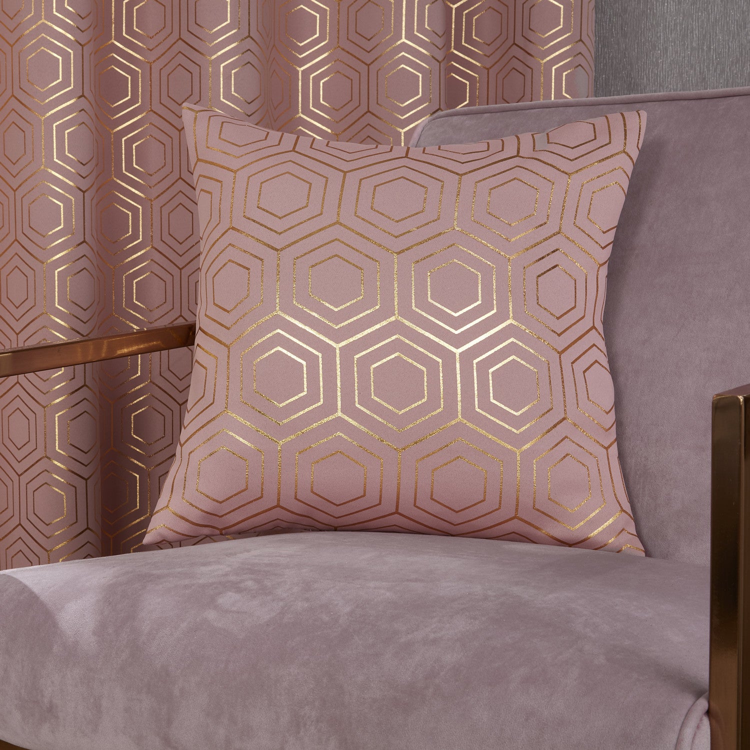 The striking metallic geometric design brings a modern contemporary aesthetic to any room, complemented by a soft, velvety fabric. Featuring a chic metallic pattern in a stylish colour palette, this cushion adds a touch of subtle elegance to your space.