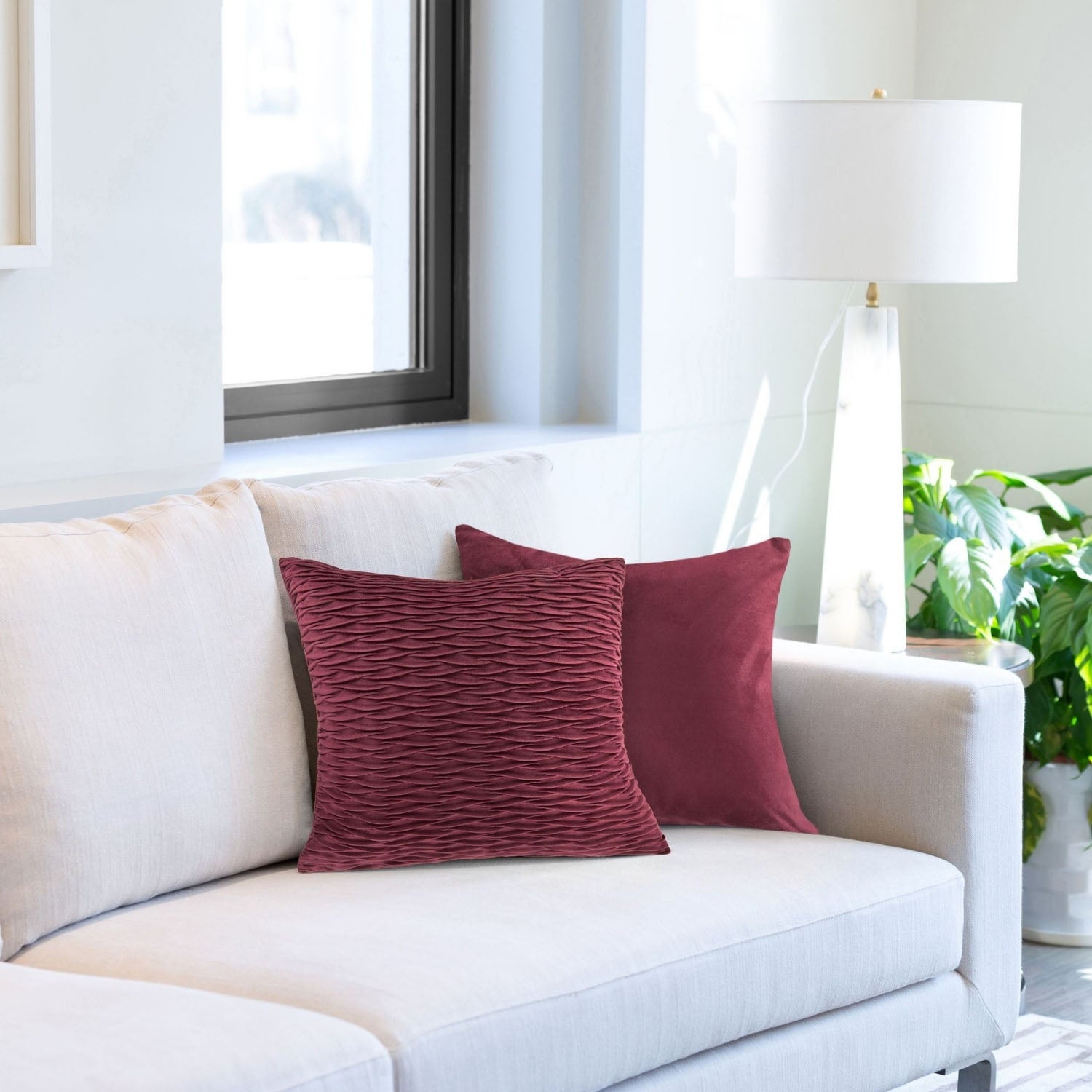 Henley Bordeaux Red Pleated Velvet Cushion Covers (Pair)