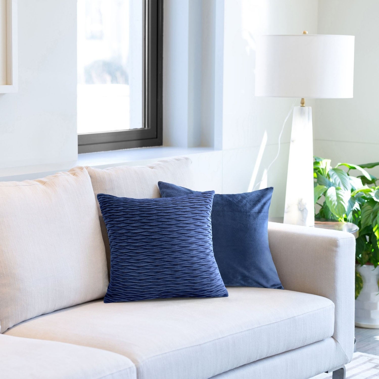 Henley Navy Blue Pleated Velvet Cushion Covers (Pair)