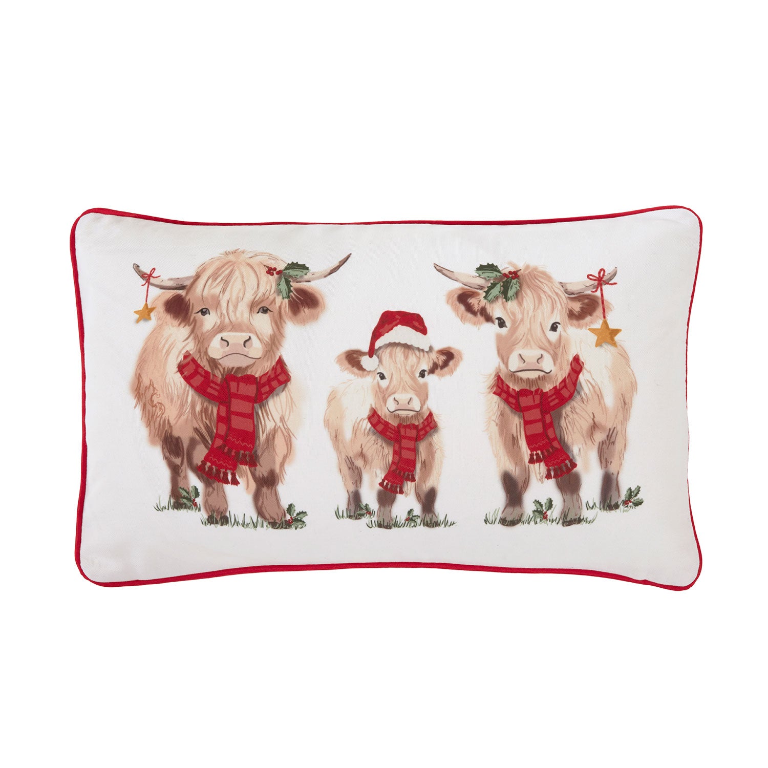 Wrapped Up Warm Highland Cows Printed Canvas Cushion (30cm x 50cm)