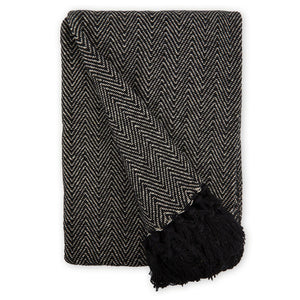 Herringbone Black Recycled Cotton Cushion Cover (Pair)