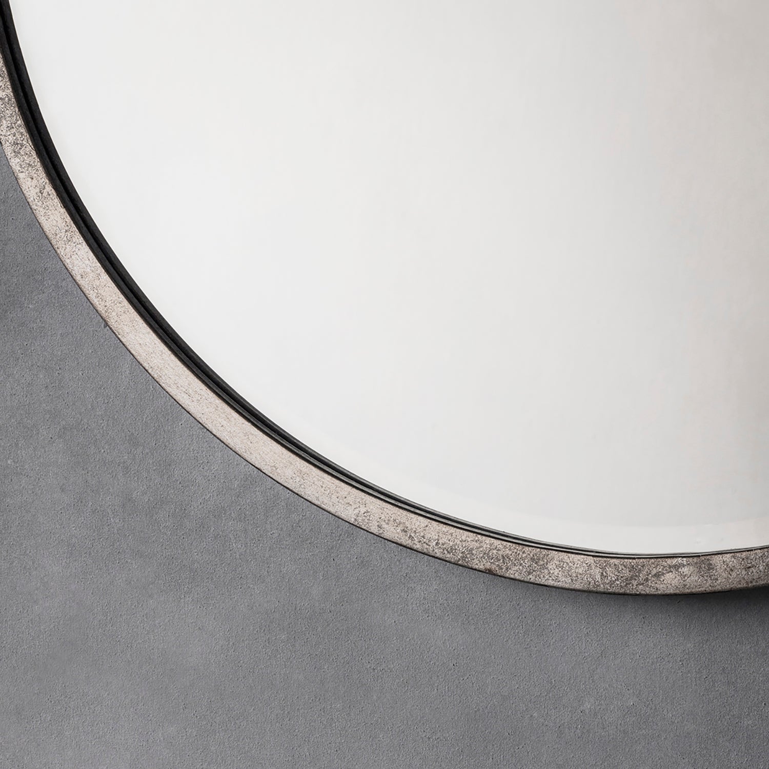 Introducing the Higgins Antique Silver Round Mirror - the ideal choice for enhancing your living space. With its contemporary design, this mirror perfectly complements any modern-themed décor, effortlessly adding a touch of elegance and style.
