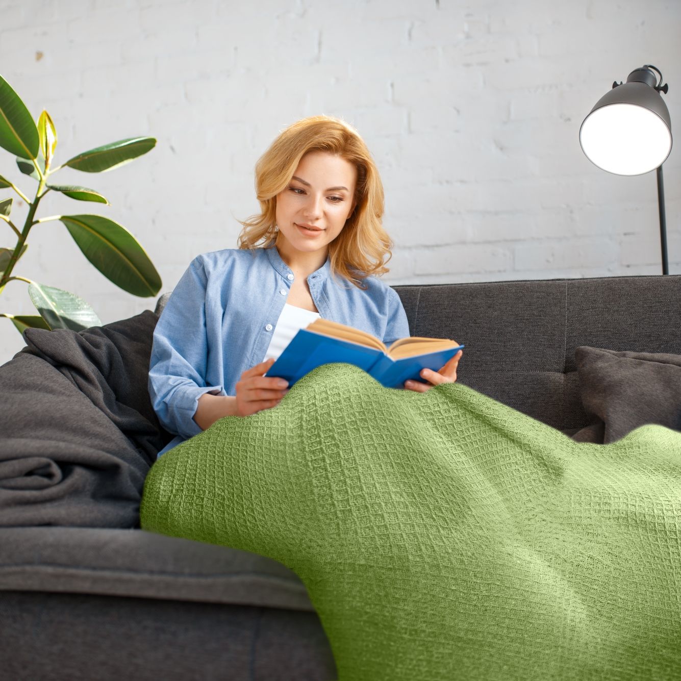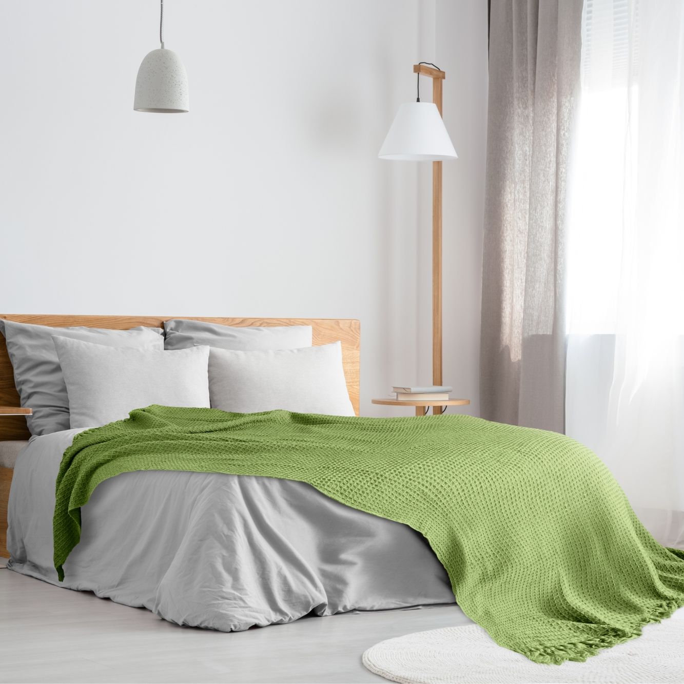 Pistachio Green Honeycomb Recycled Cotton Throw