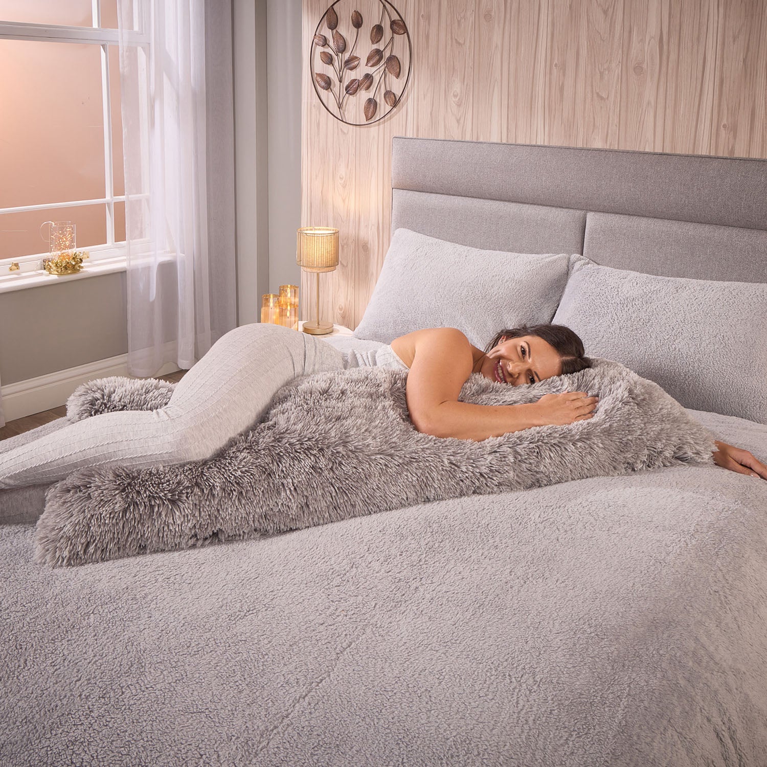 The Grey Long Hair Bolster Pillow is an incredibly versatile addition to any bedding collection, providing support for your neck and head.