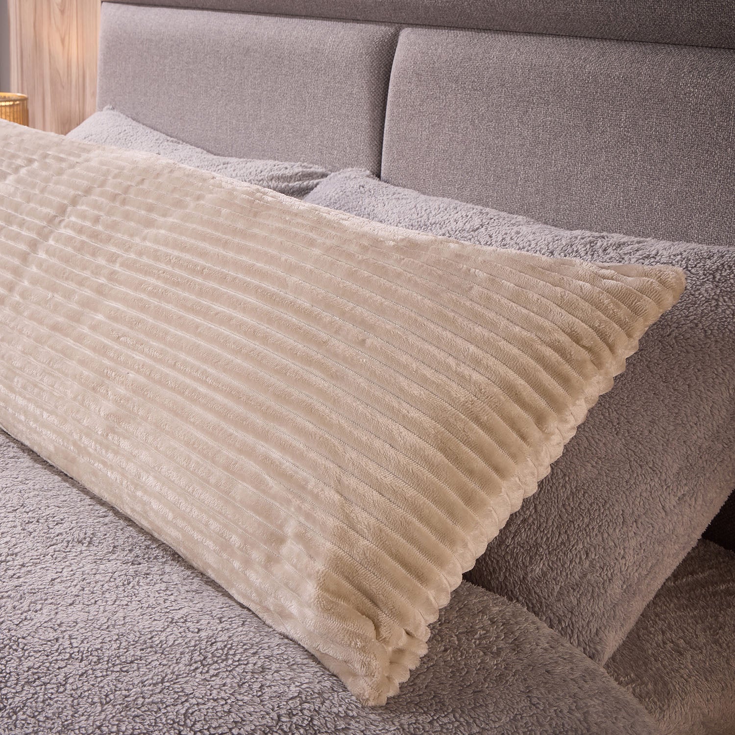 Velvet Cord Natural Bolster Pillow