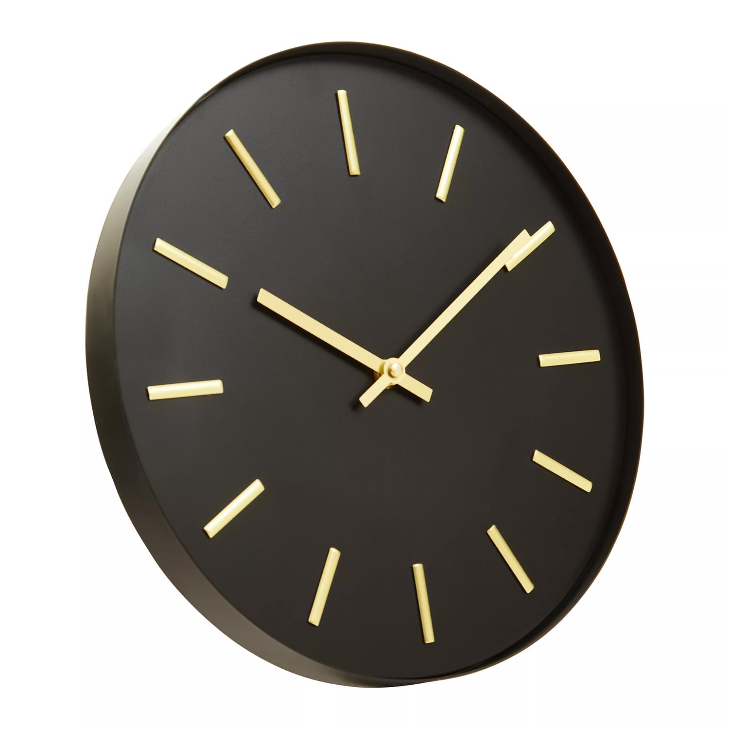Elegantly crafted from sturdy metal in a round shape, this wall clock is a timeless accent piece in the living area. Lending depth to the interior, this wall clock features an unlabelled dial in the black finish with a contrast of gold finish minute lines.