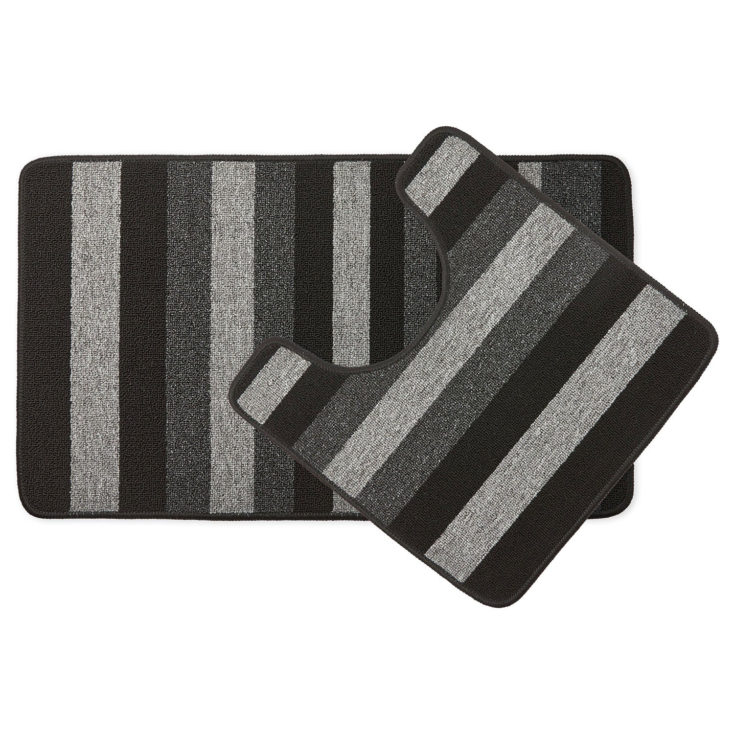 Jersey Contrast Grey Stripe 2 Piece Bath Mat Set
