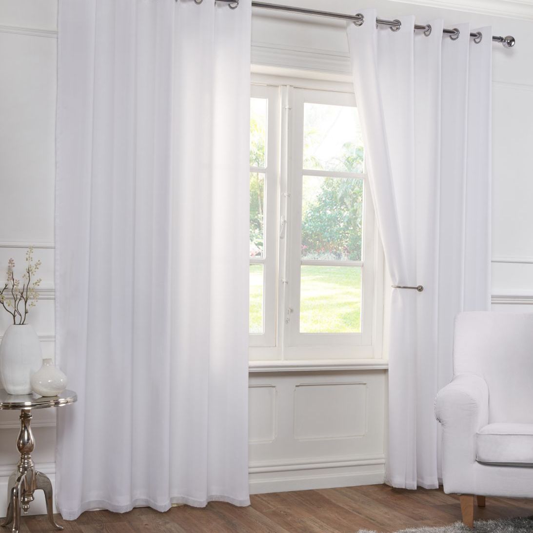 Welcome brightness into your living space with this beautiful pair of White Lined Eyelet Voile Curtains! Perfect for adding a bit of glamor and style to any room, these curtains will help create a light and airy atmosphere.