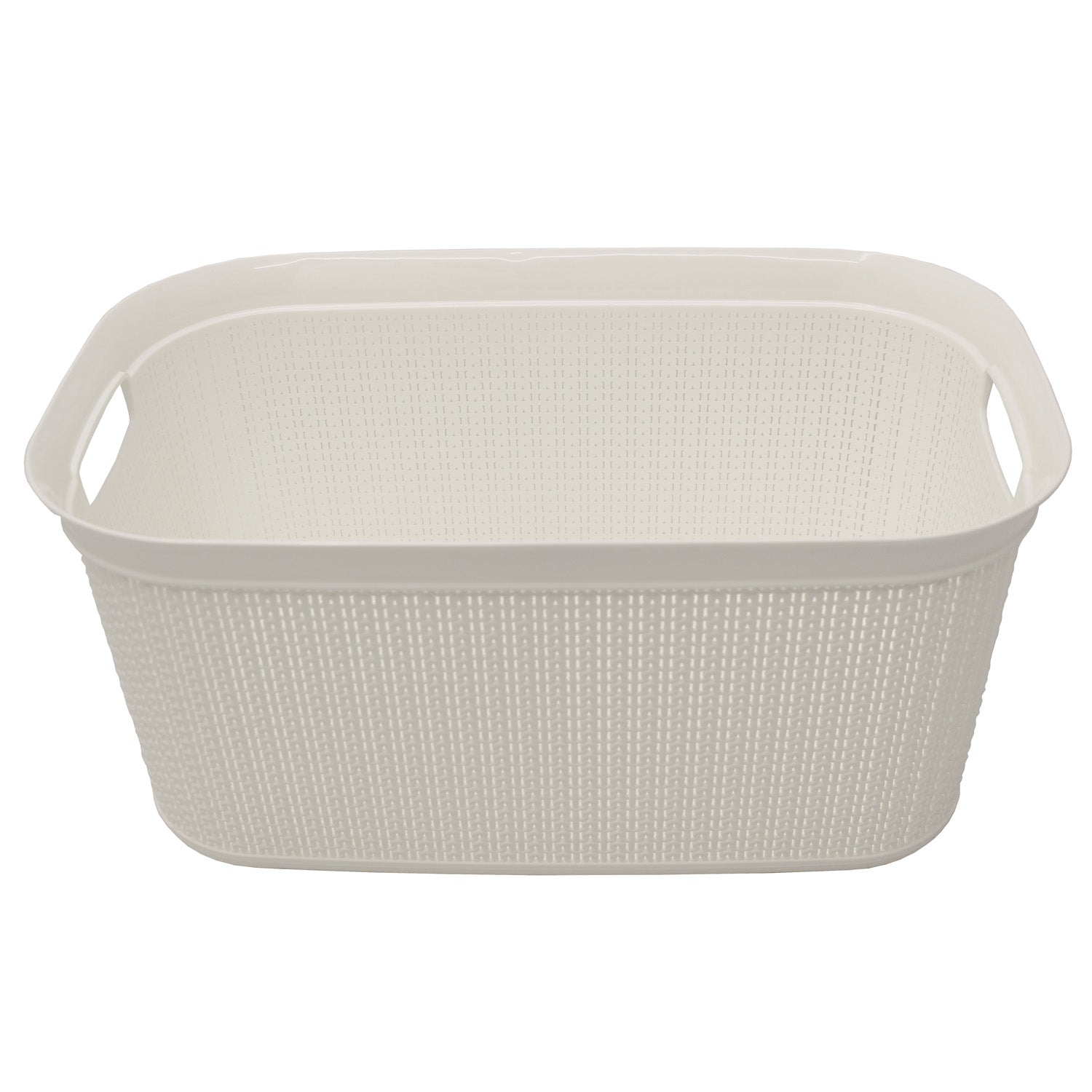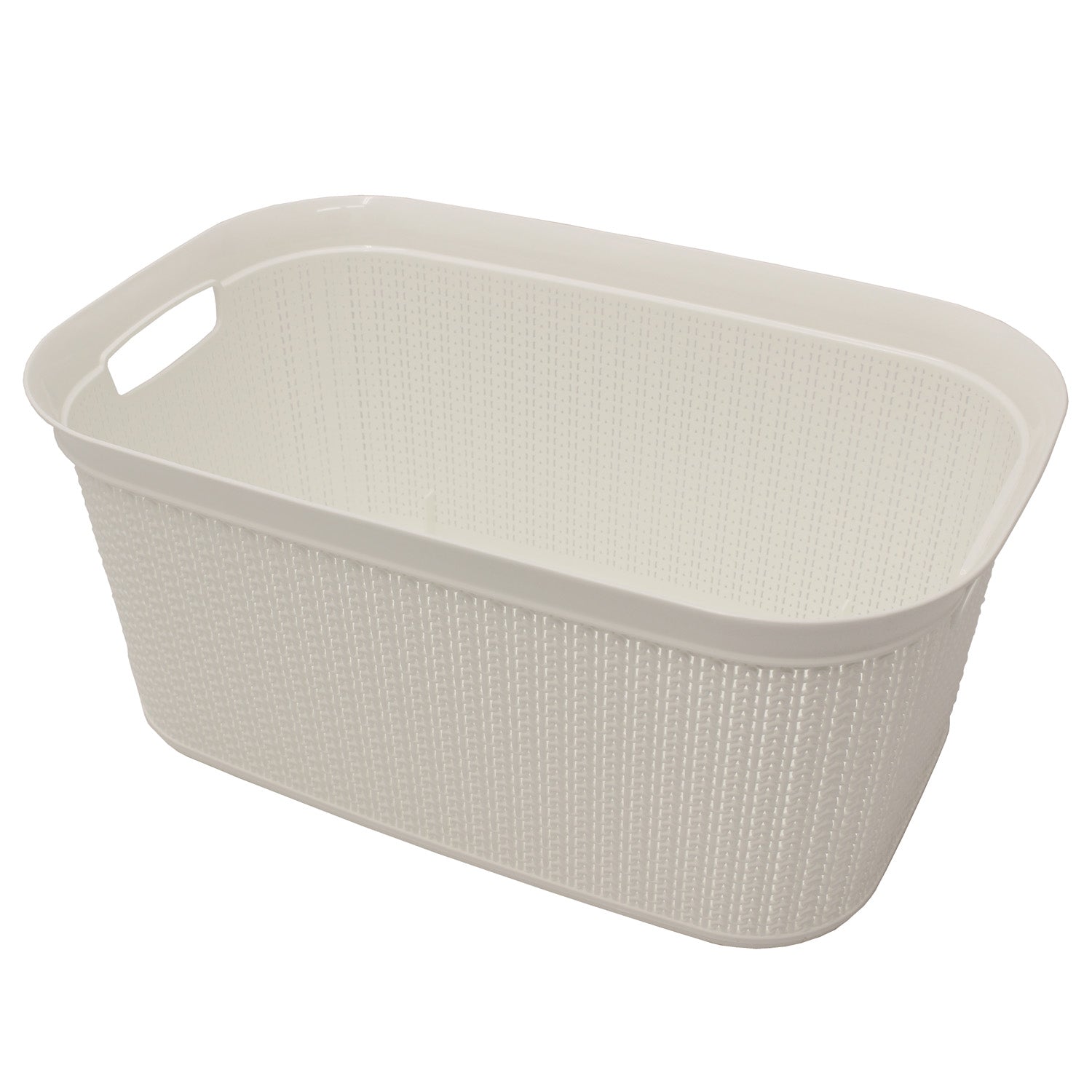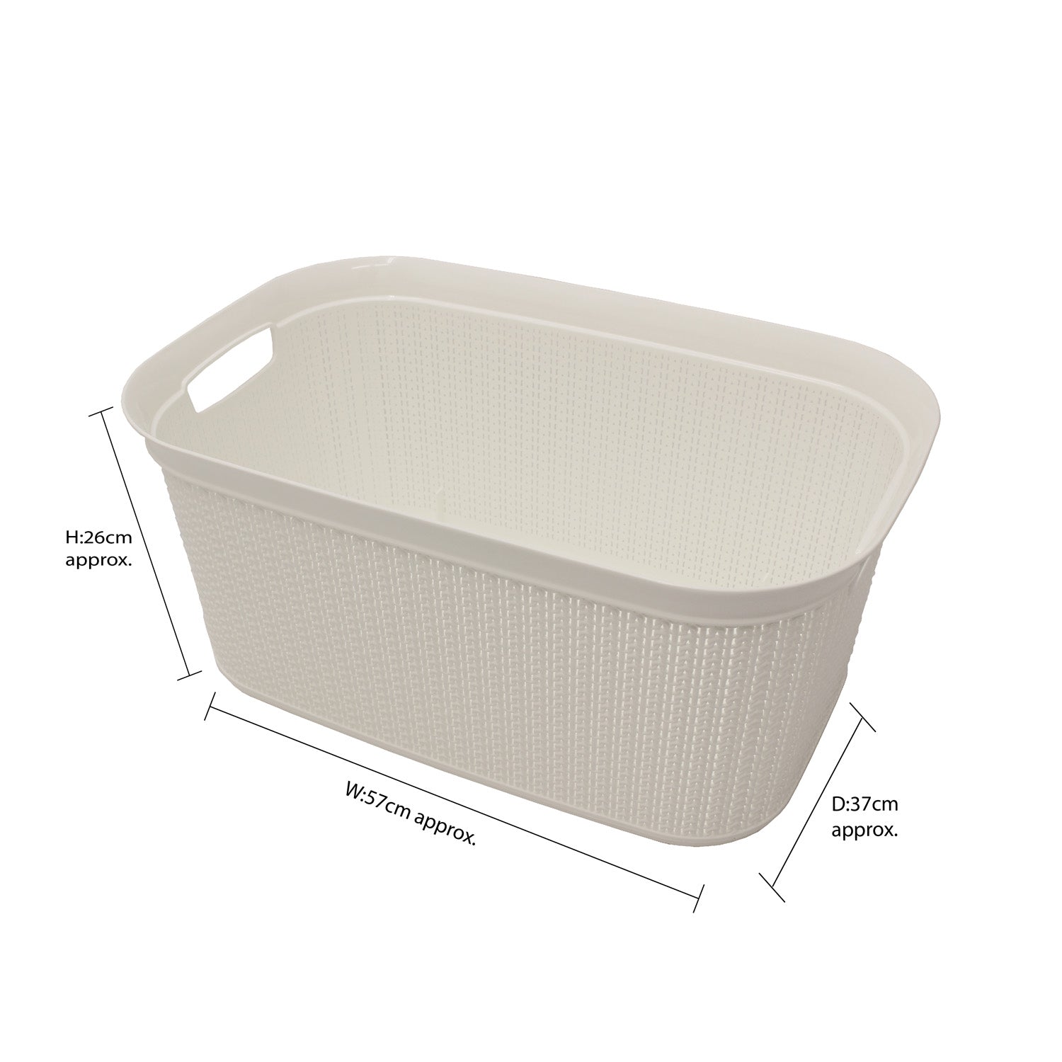 This laundry basket features a knitted loop design in the colour ivory white to complement any home decor.