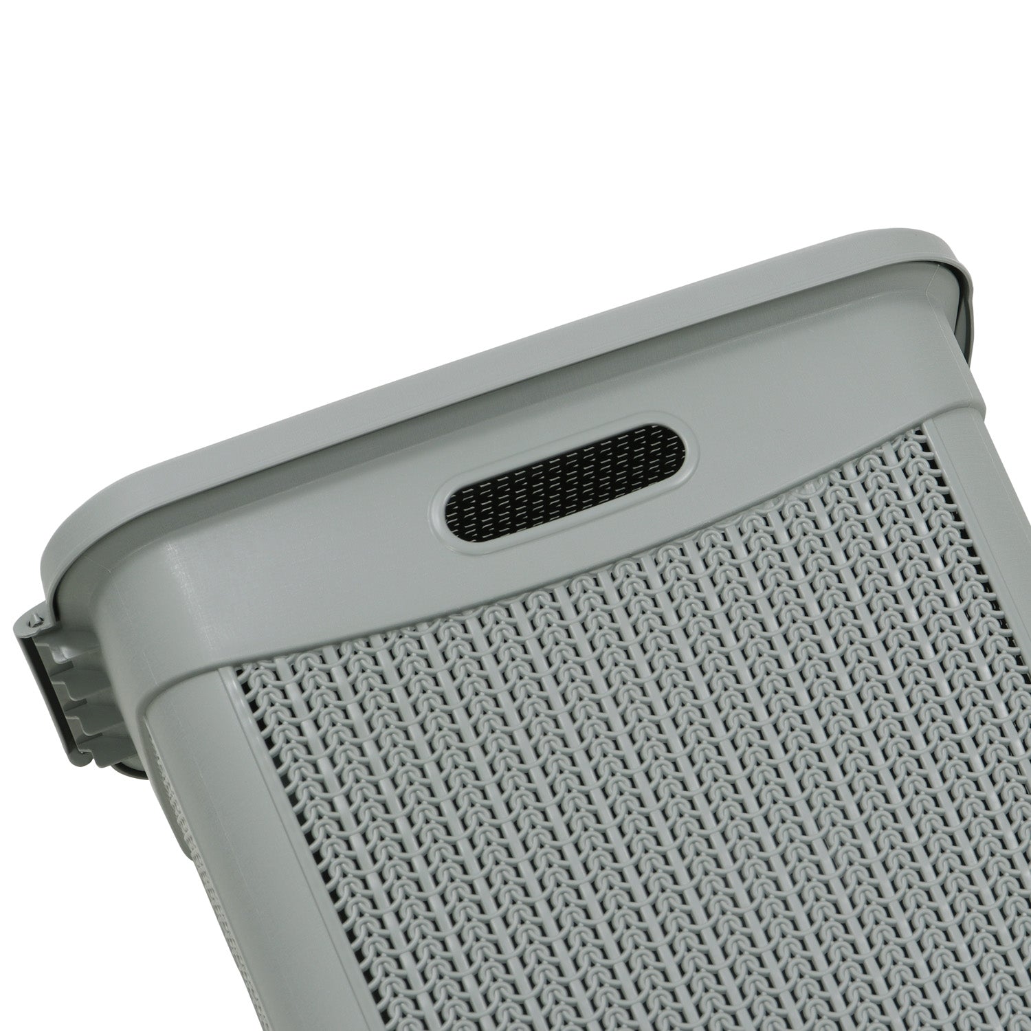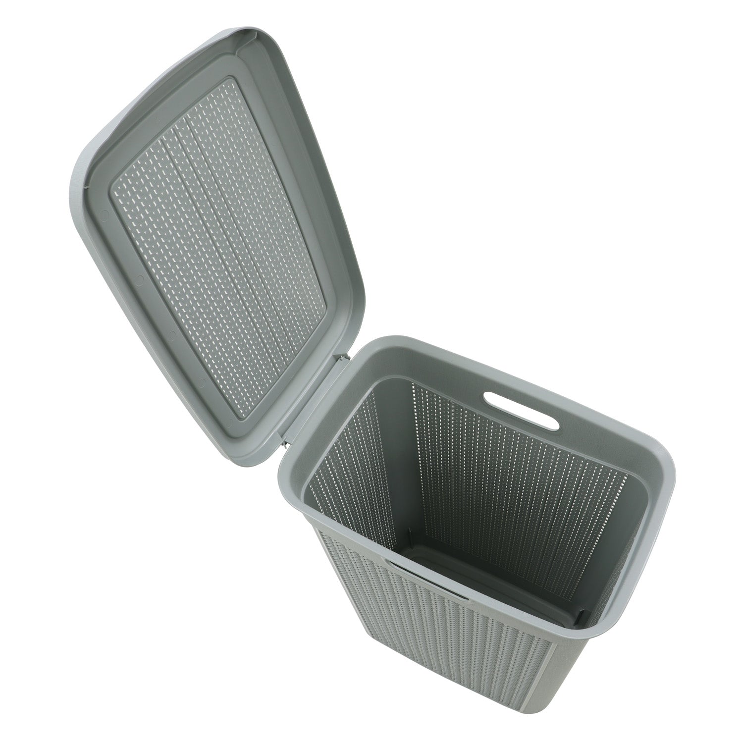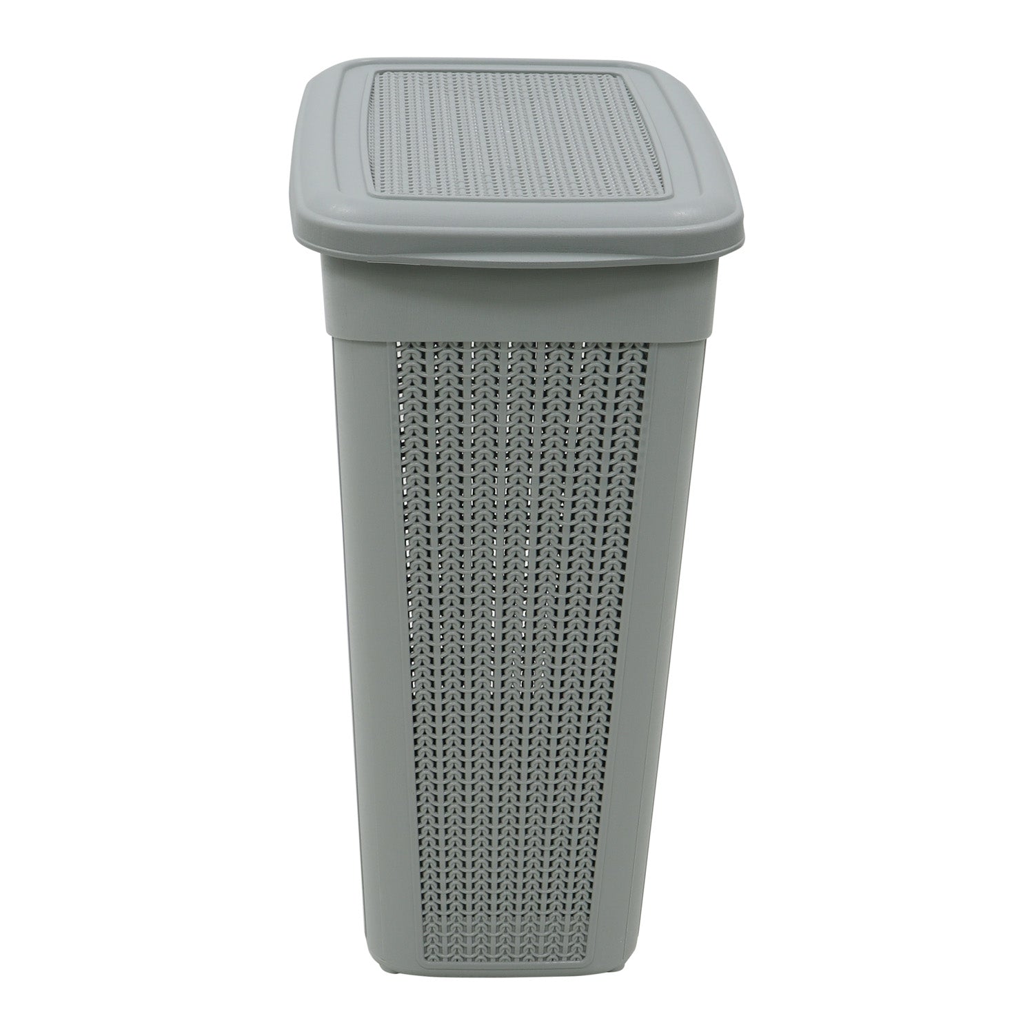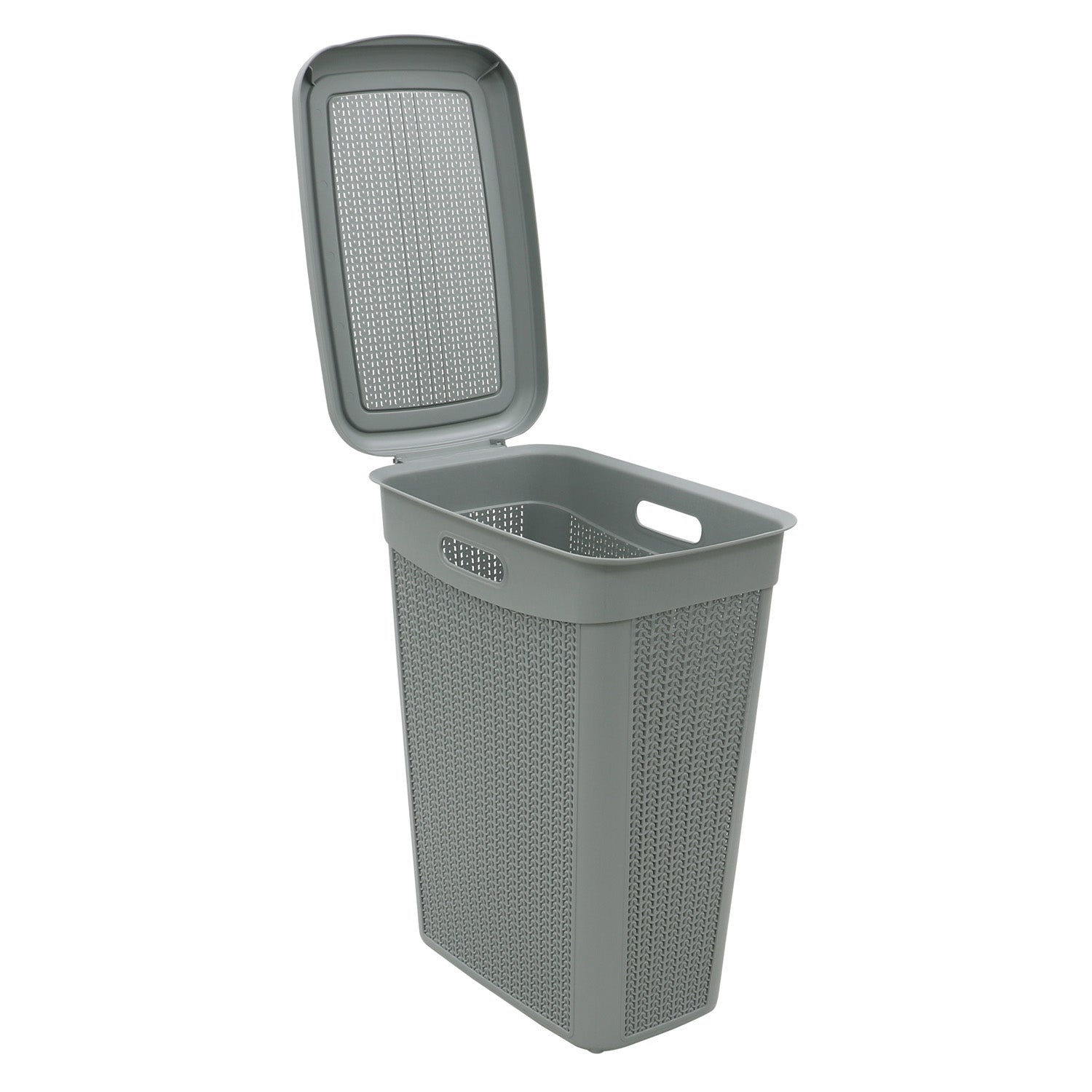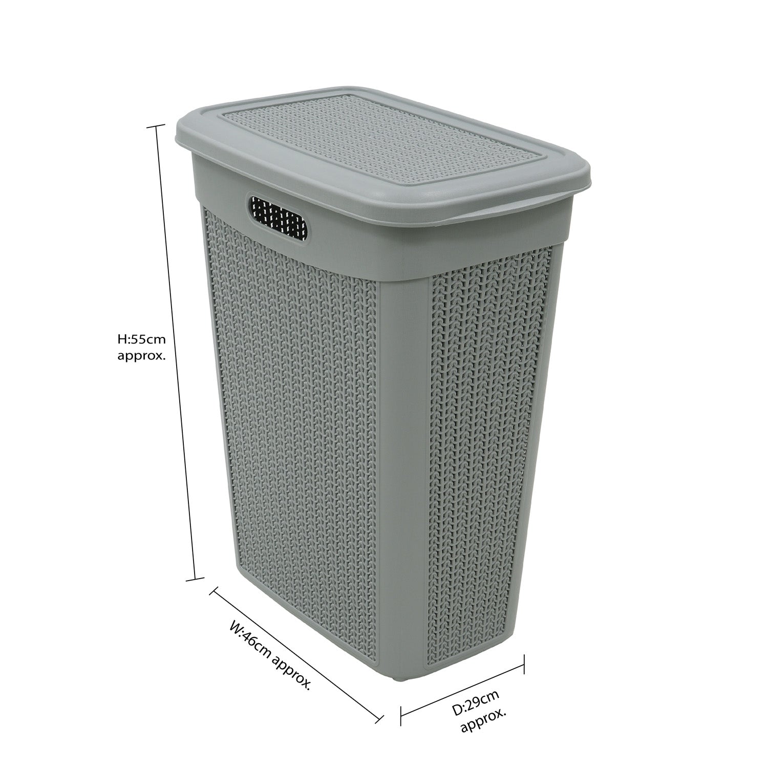This laundry basket features a knitted loop design in the colour grey to complement any home decor.