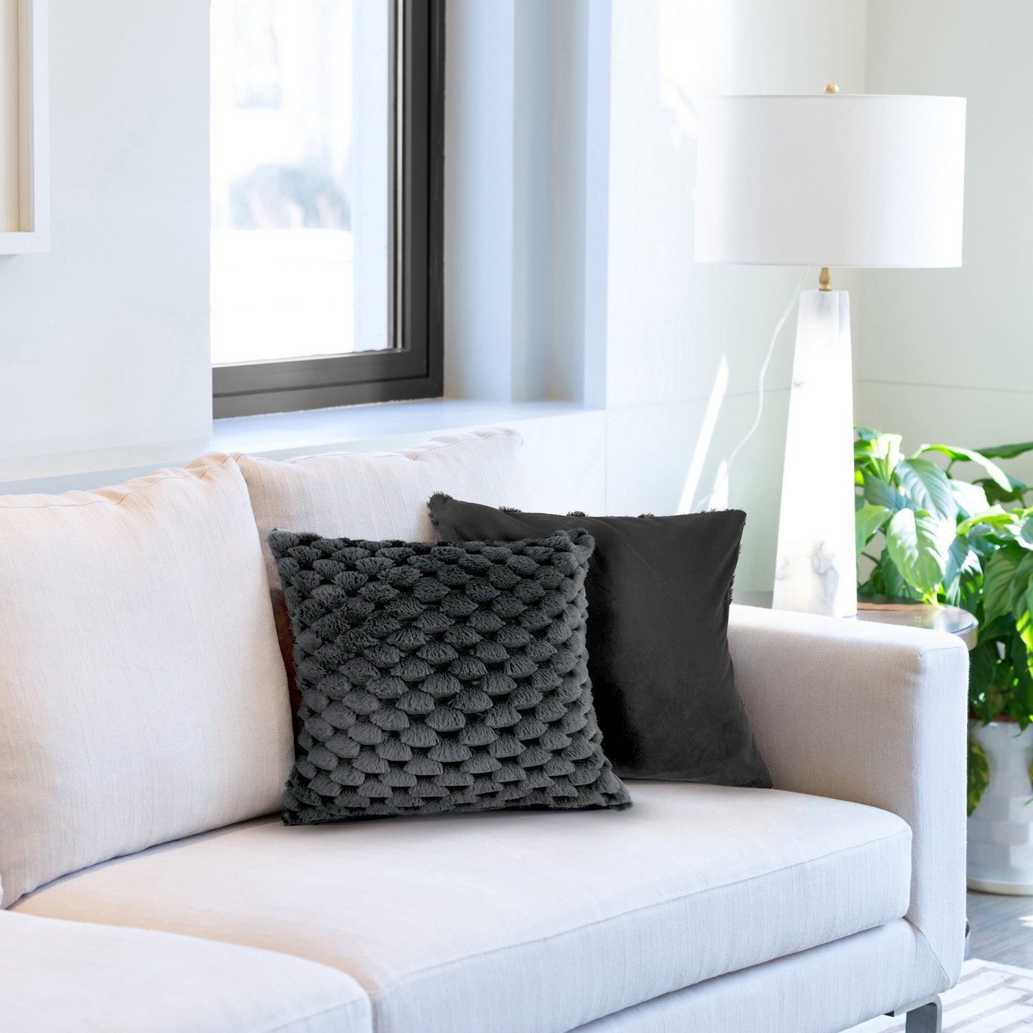 This cushion cover features a chunky, soft-touch texture that beautifully mimics rabbit fur, adding a touch of elegance to your room.