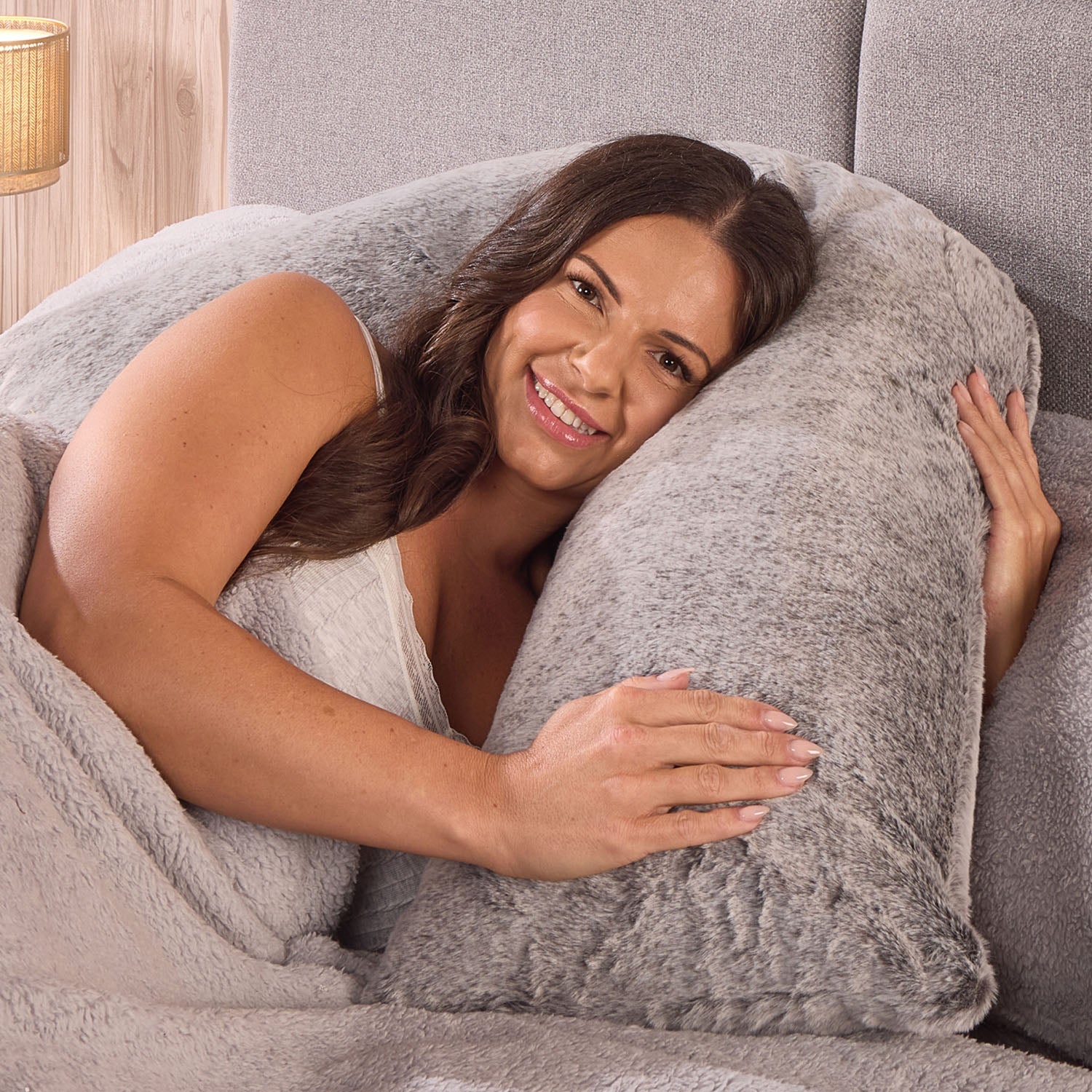 Cosy up with the Luxury Faux Fur V-Shape Support Pillow, which combines comfort and practicality. This incredibly soft pillow is generously filled to provide ultimate support, making it perfect for both sitting up and lying down.
