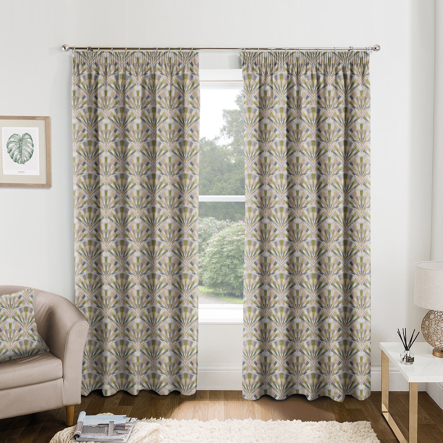 With a striking art deco design in soft blush and pastel shades, these stylish curtains are sure to fit easily into any decor.