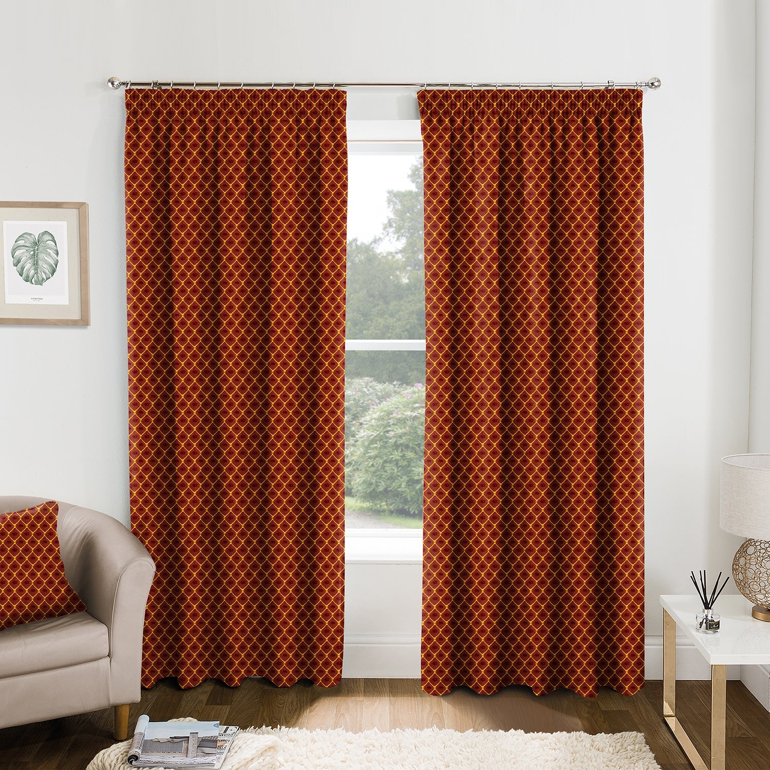 No matter the look or size of your room window, our Sicily Wine Curtains offer a custom-made tailored fit that's made just for you. Choose between two header styles - pencil pleat and eyelet header - and select from three linings depending on your need: Standard, Blackout, or Thermal. Manufactured in the UK.
