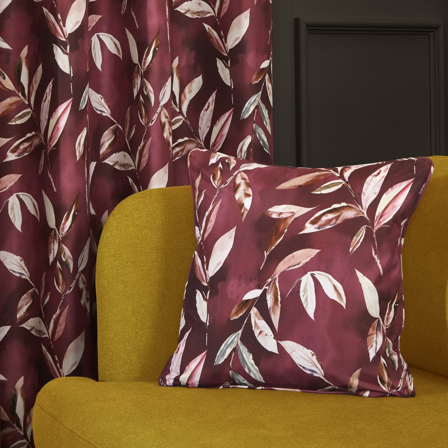 Add these stunning printed Madrid cushion covers to your home, featuring a striking floral leaf pattern boldly printed on a deep coloured background.