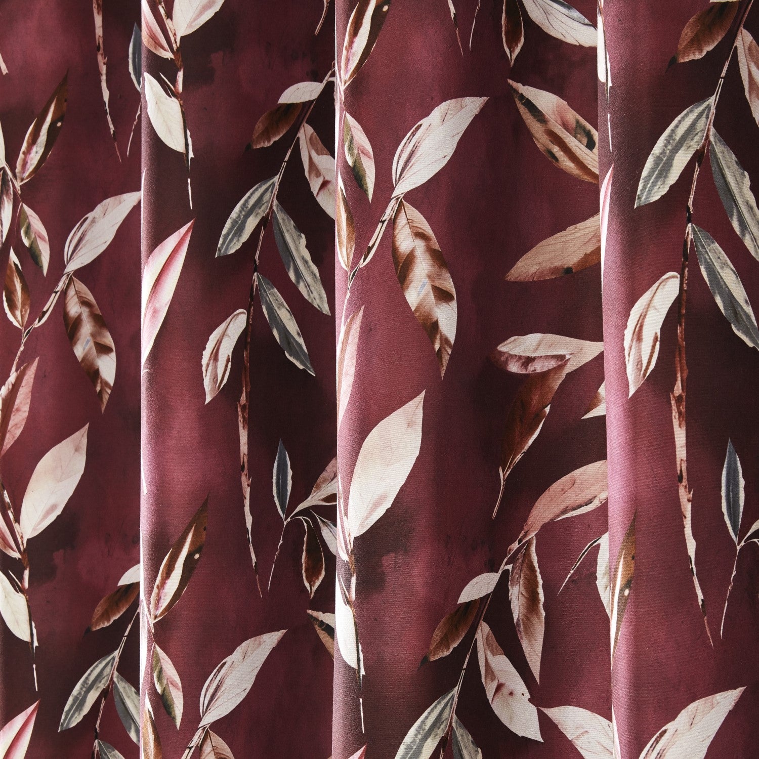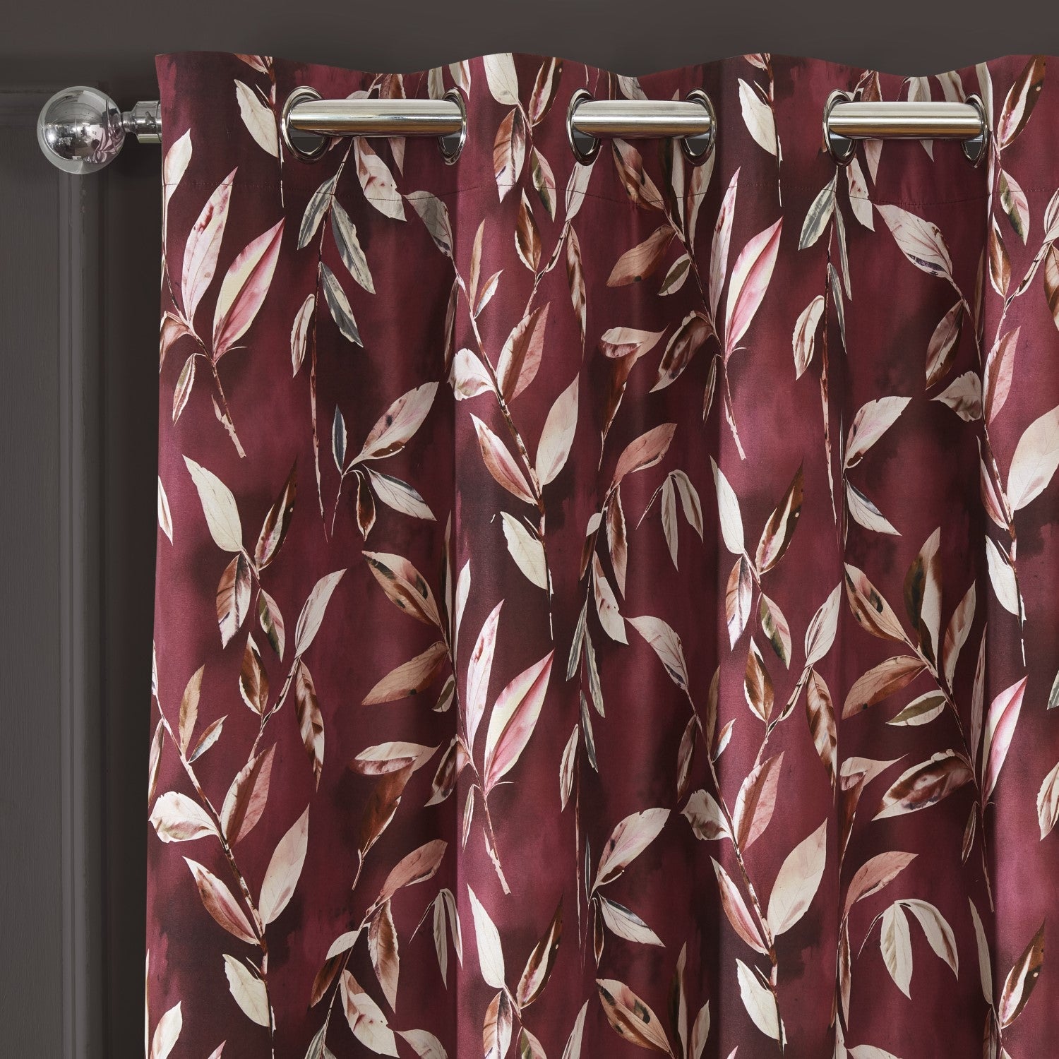 The stunning printed Madrid curtains feature a striking floral leaf pattern boldly printed on a deep coloured background.