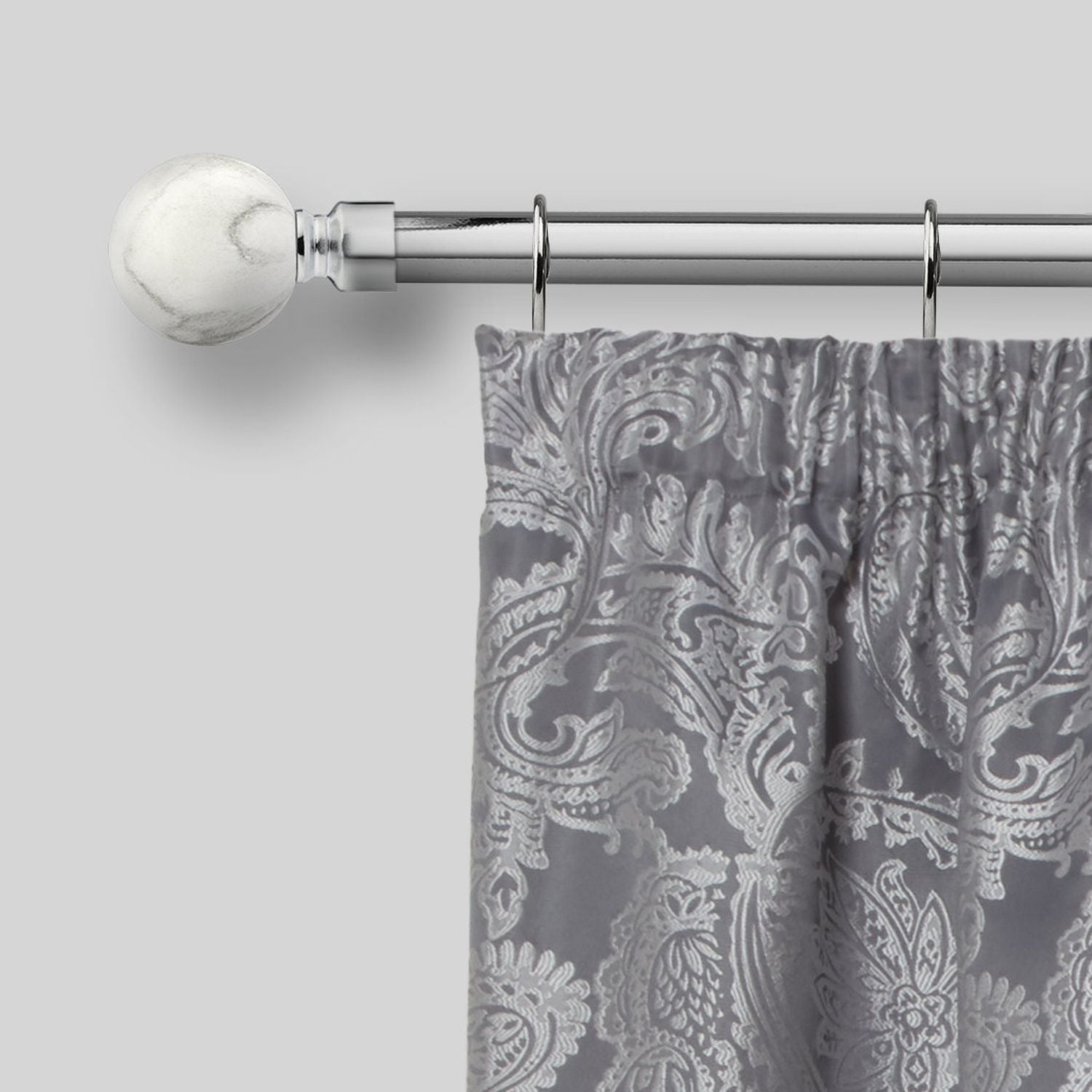 This Brushed Silver Marble Extendable Curtain Pole is designed for any type of curtain (eyelet or pencil pleat) and includes optional curtain rings for the purpose of hanging pencil pleat curtains.