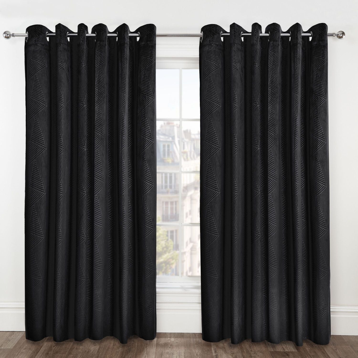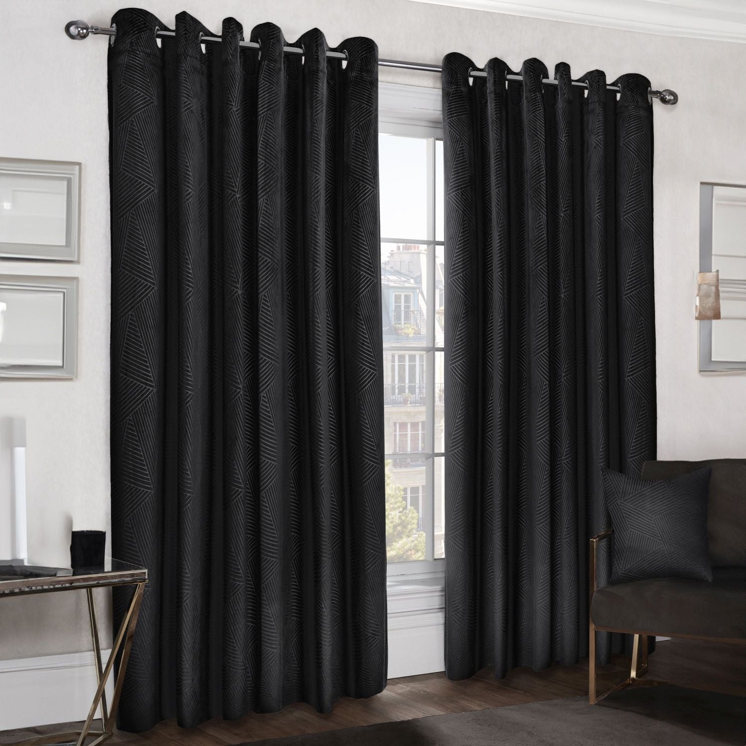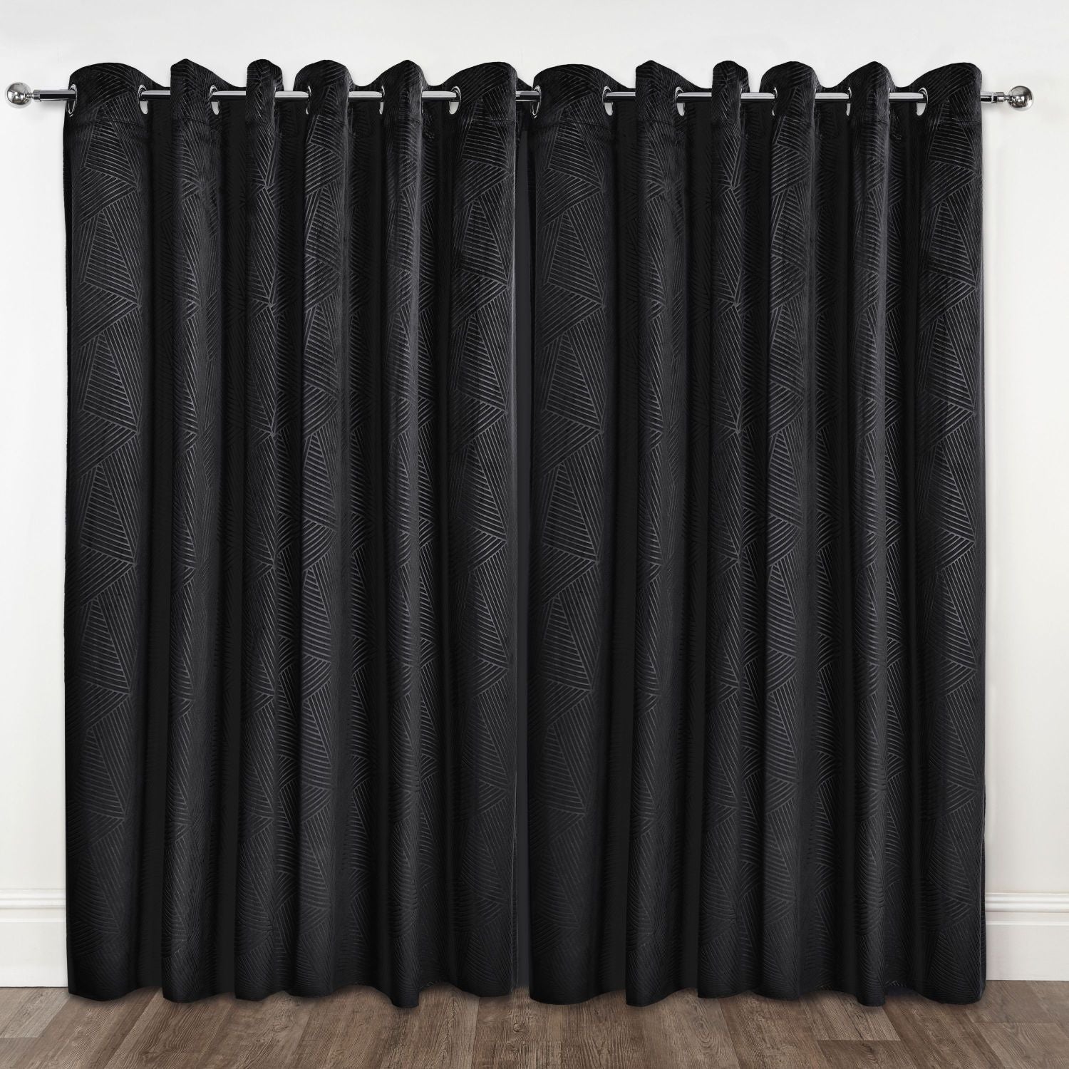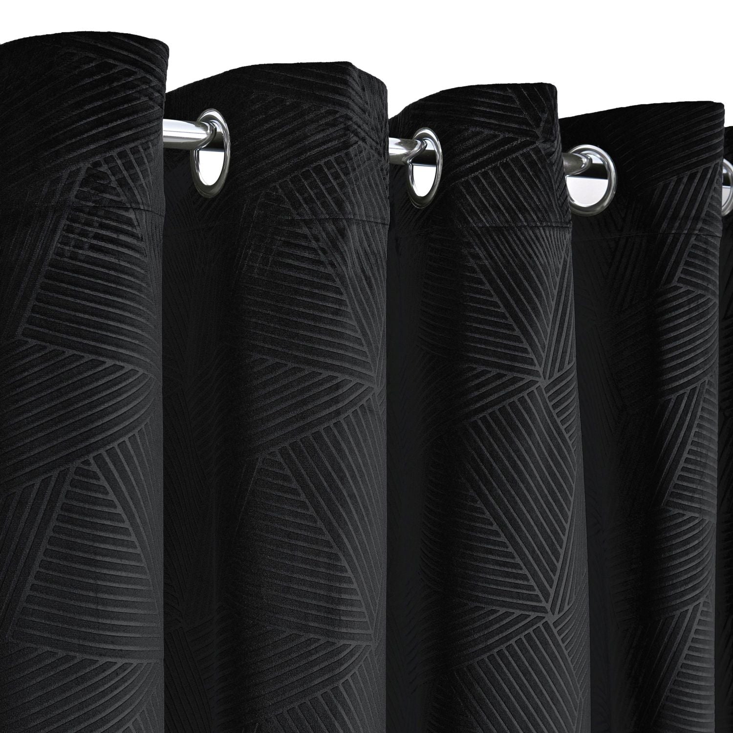 Midnight Black Embossed Velvet Thermal Blackout Eyelet Curtains
