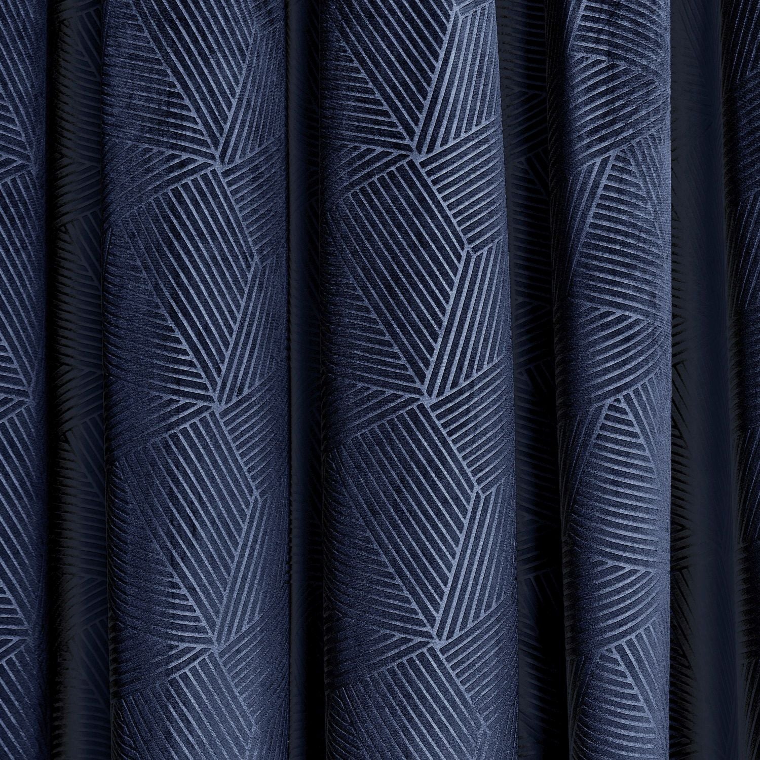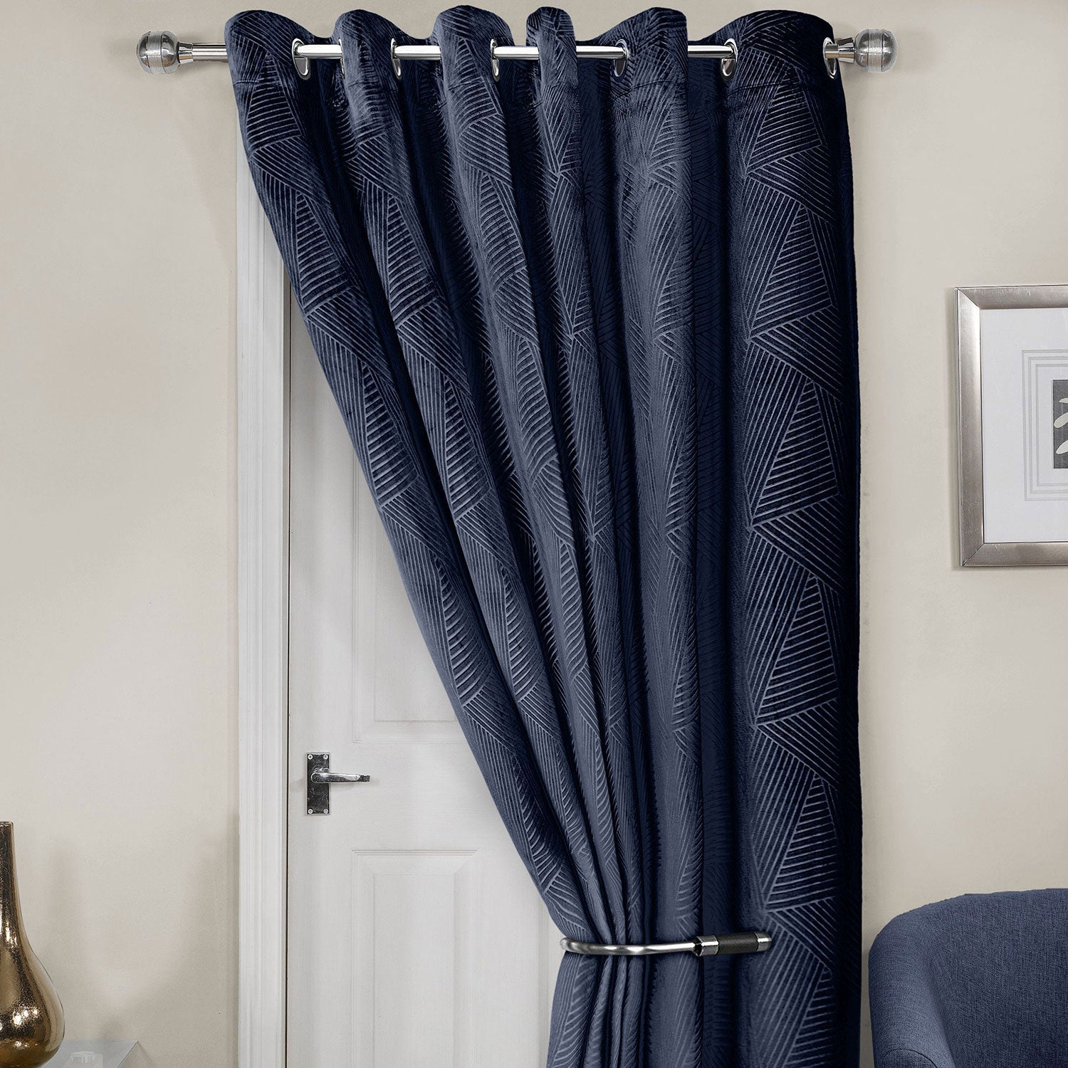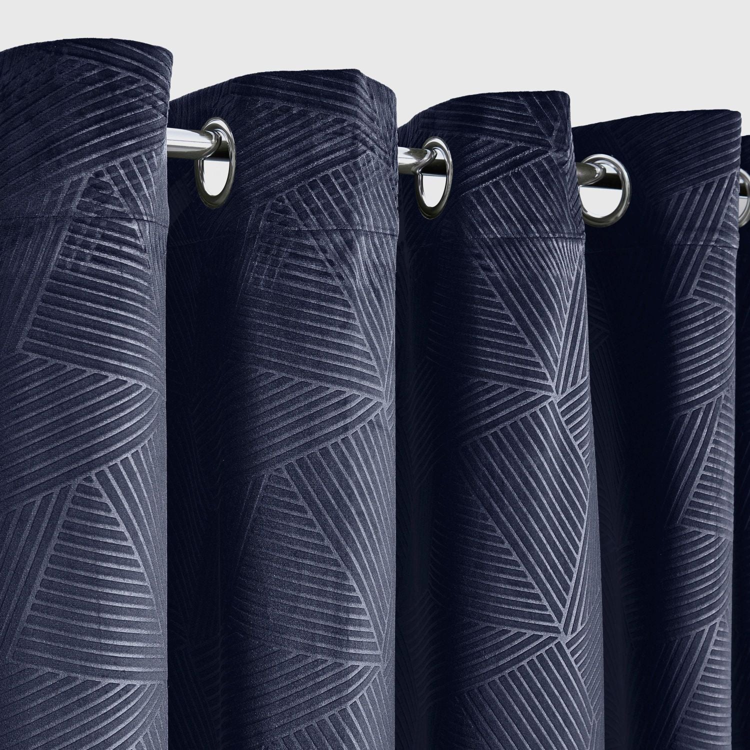 Midnight Navy Blue Embossed Velvet Thermal Eyelet Door Curtain