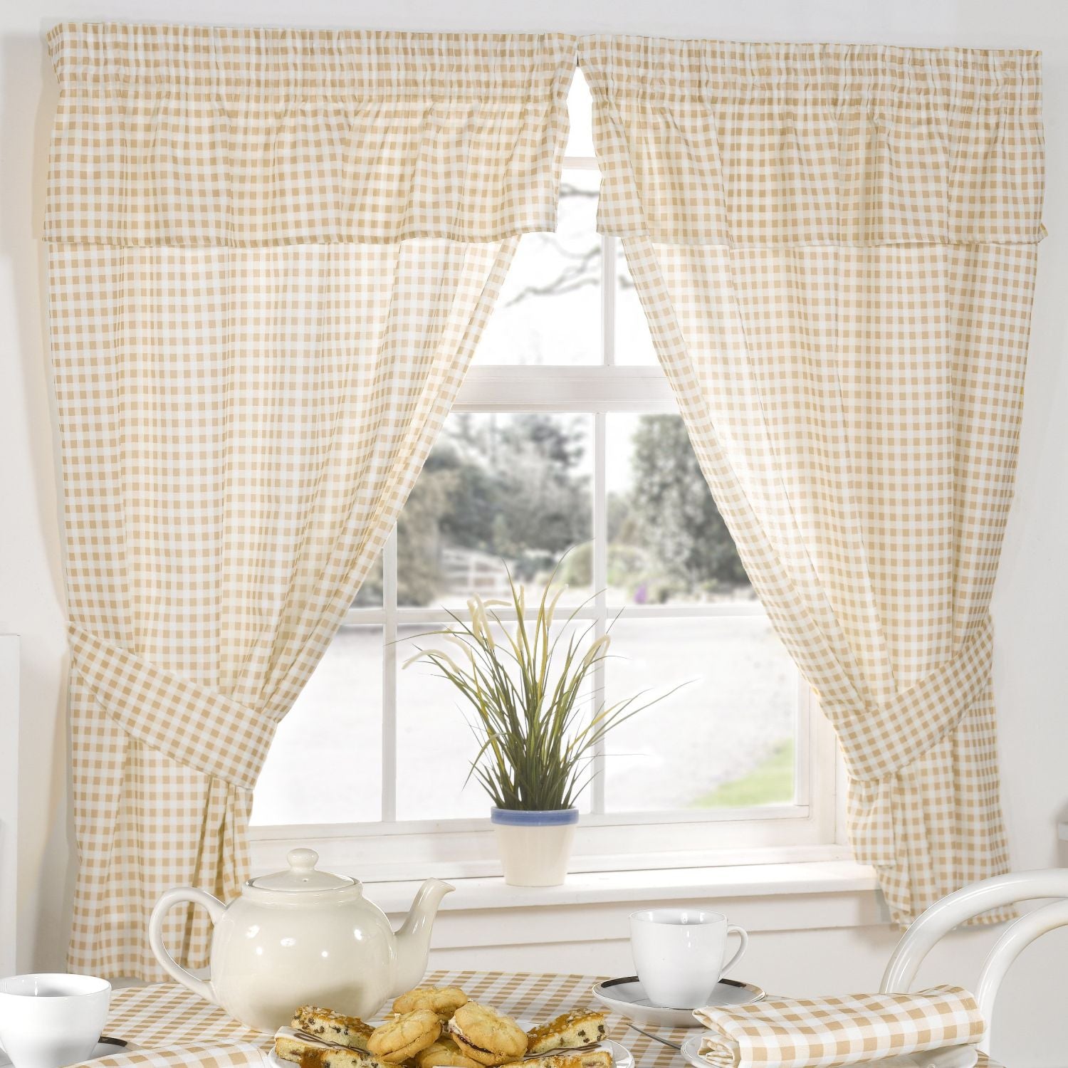 Molly Gingham Beige Pencil Pleat Curtains With Pelmet Header