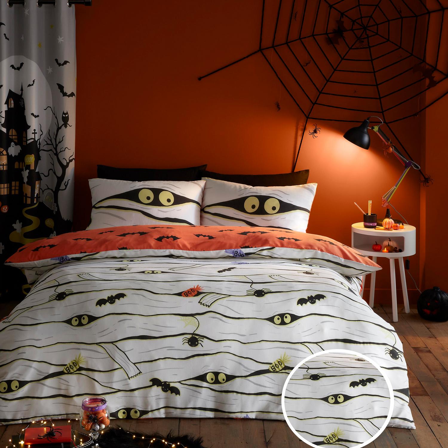 Trick or treat yourself and have a Happy Halloween with this wicked Mummy glow-in-the-dark reversible bedding.