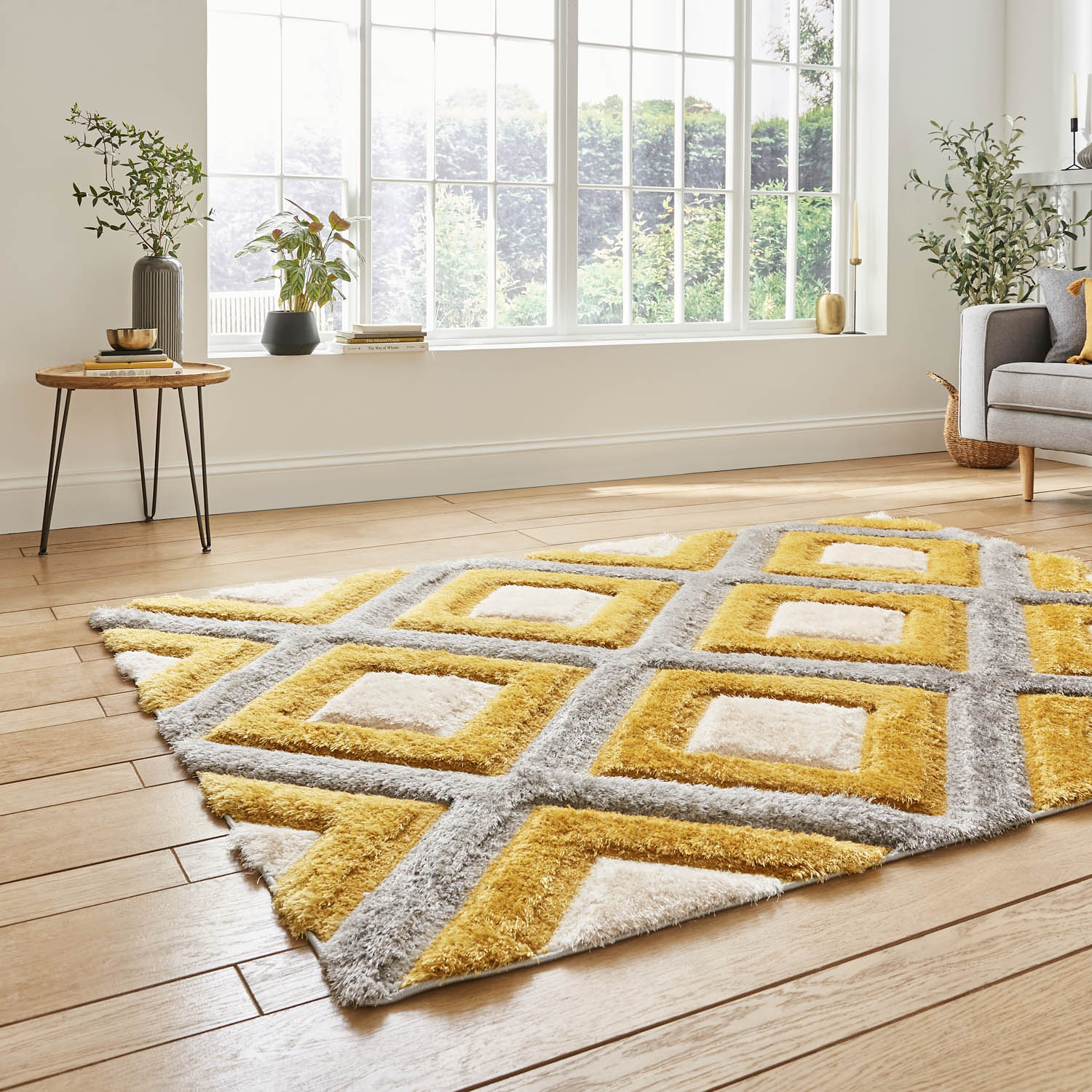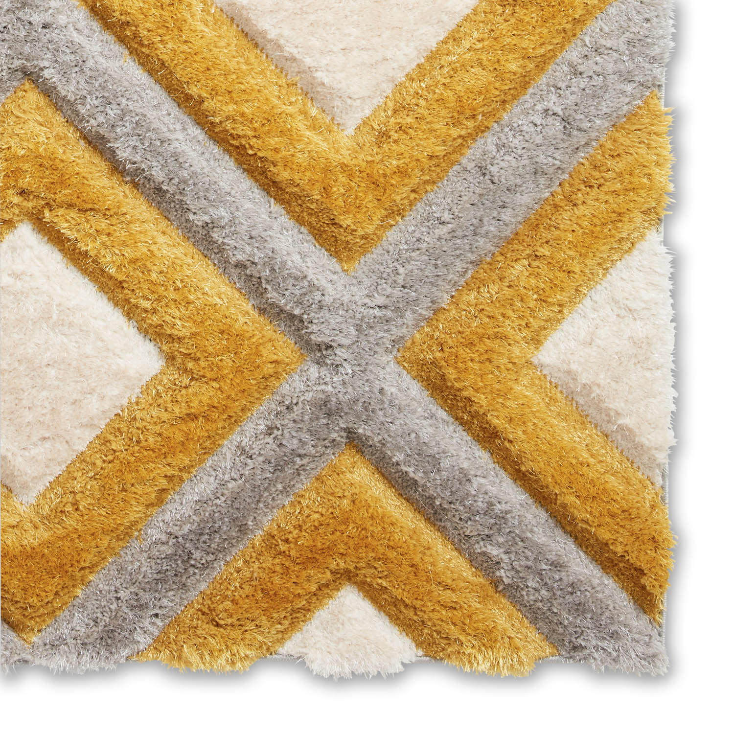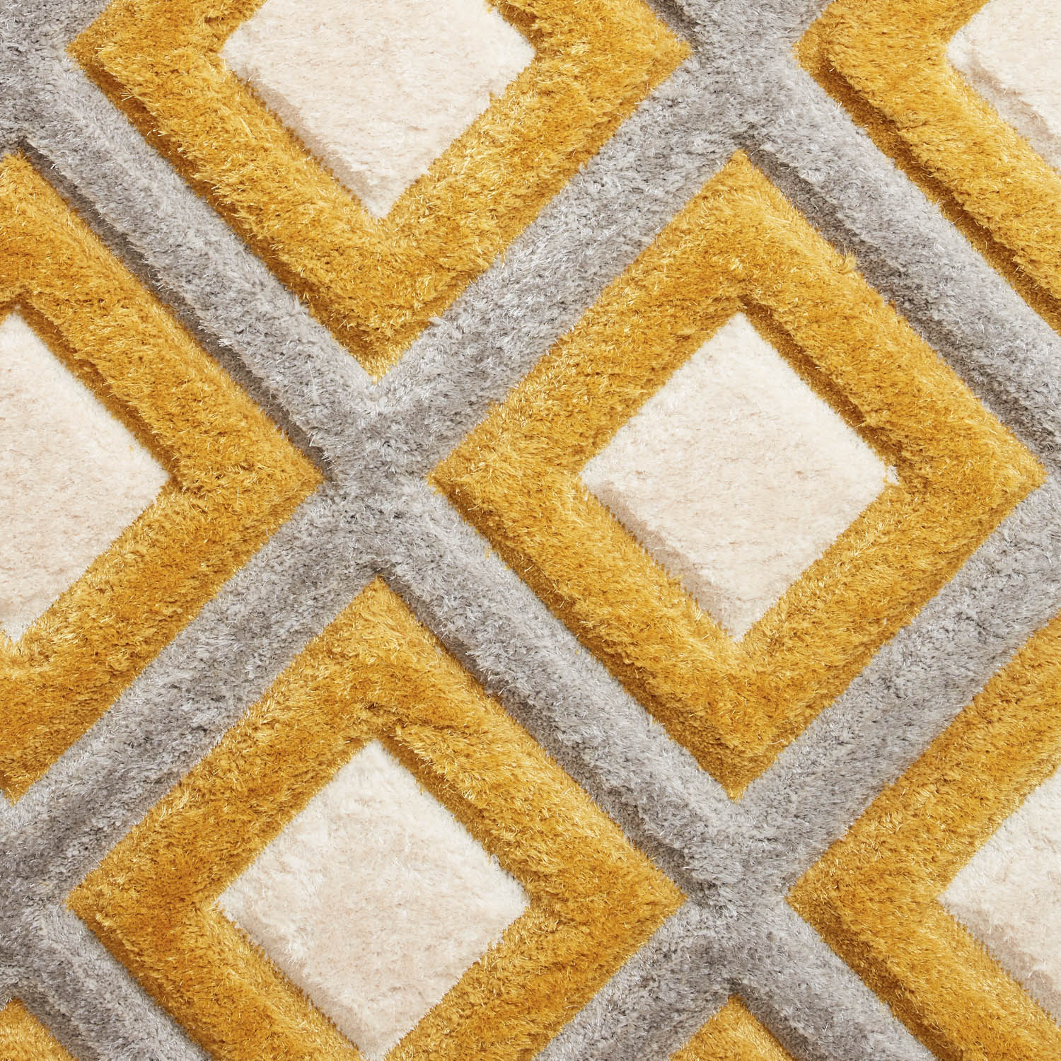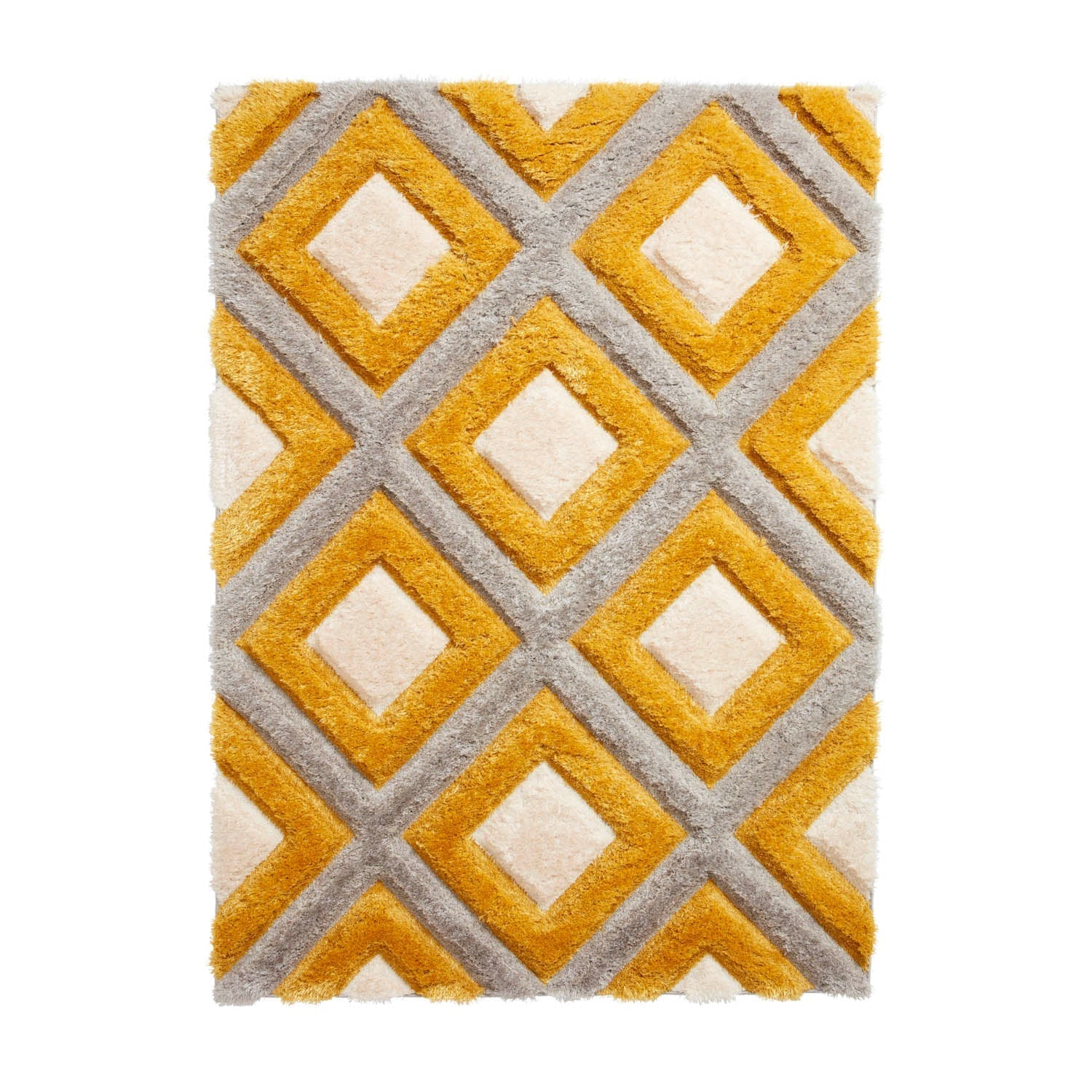 Discover the captivating Olympia Grey/Yellow Geometric Rug, meticulously hand-carved from a blend of polypropylene and polyester. The contemporary geometric design comes to life with its enchanting 3D effect, adding depth and dimension to any space!