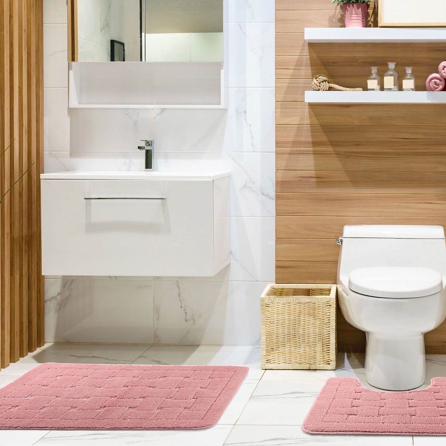 Need to wash your bathroom set? This practical mat set offers low maintenance style: you can simply pop it into the washing machine.