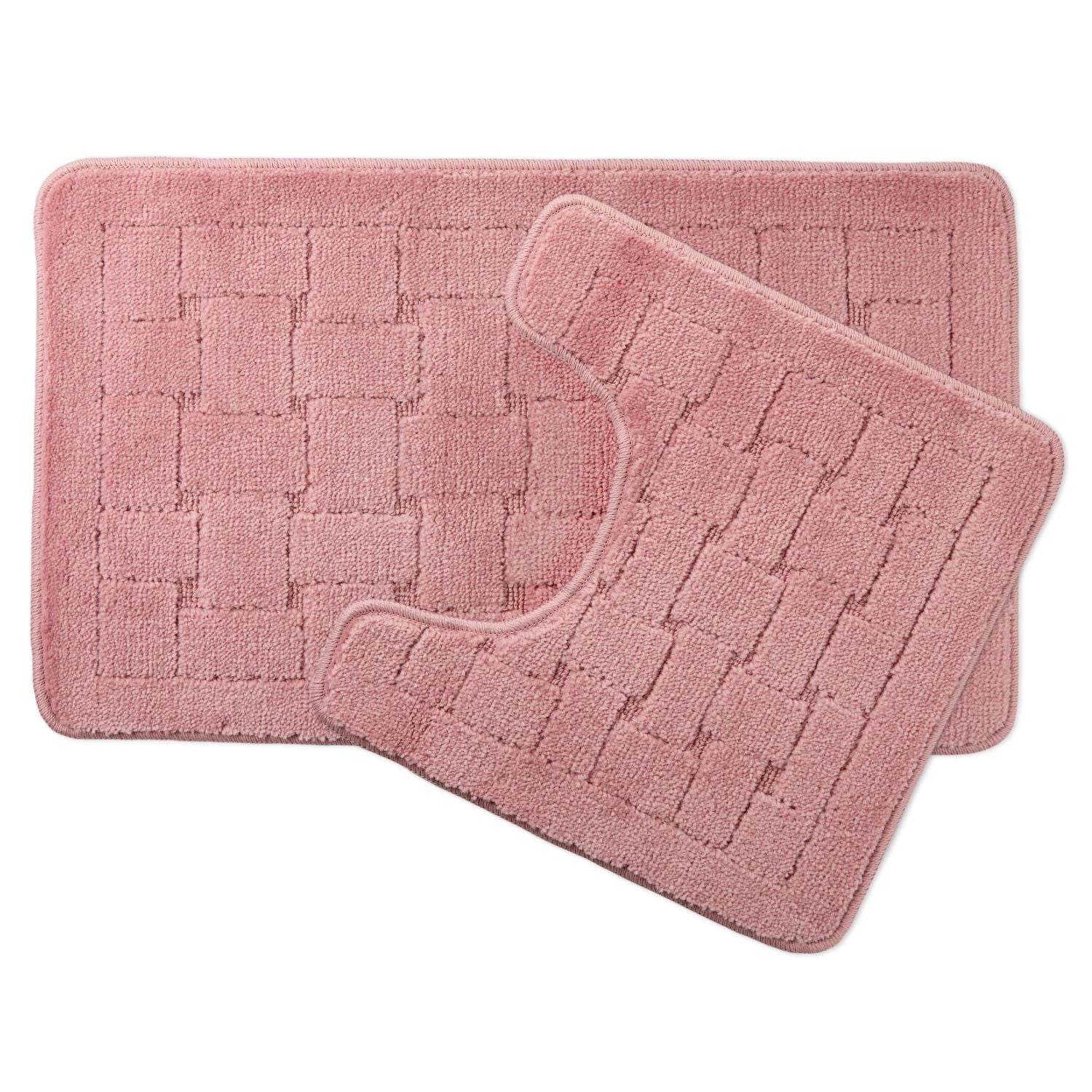 Orkney Blush Pink Crosshatch 2 Piece Bath Mat Set