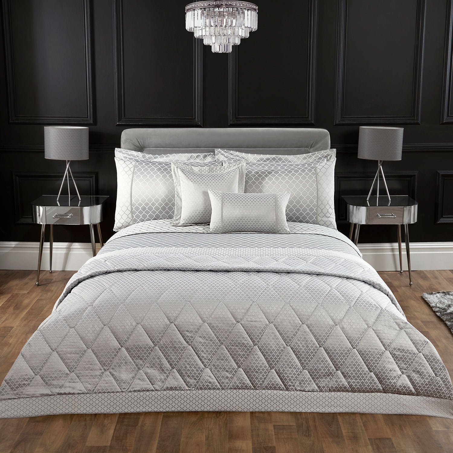 Our luxurious silver jacquard bedding collection will add a fresh and chic addition to your room.