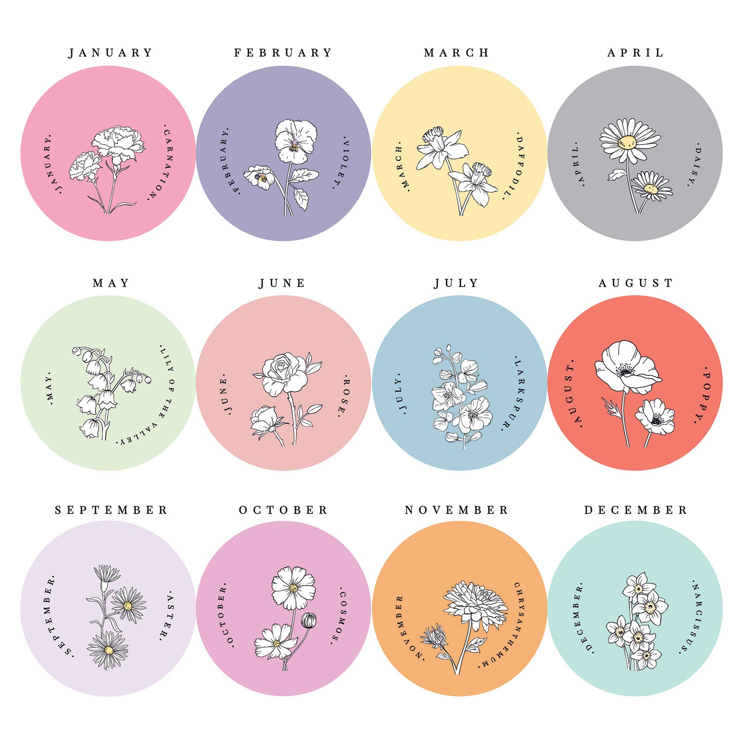Please note, the name of the month and flower are fixed elements of the design and cannot be amended or removed
