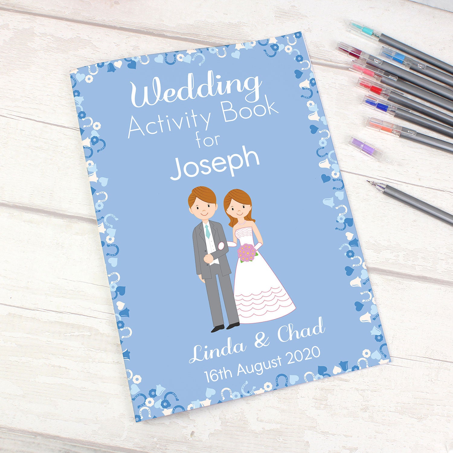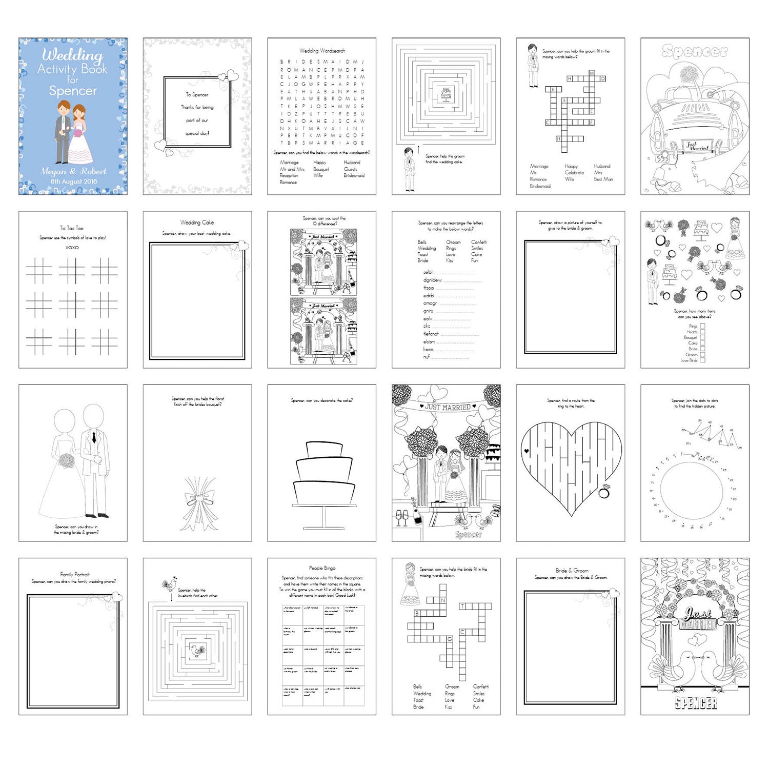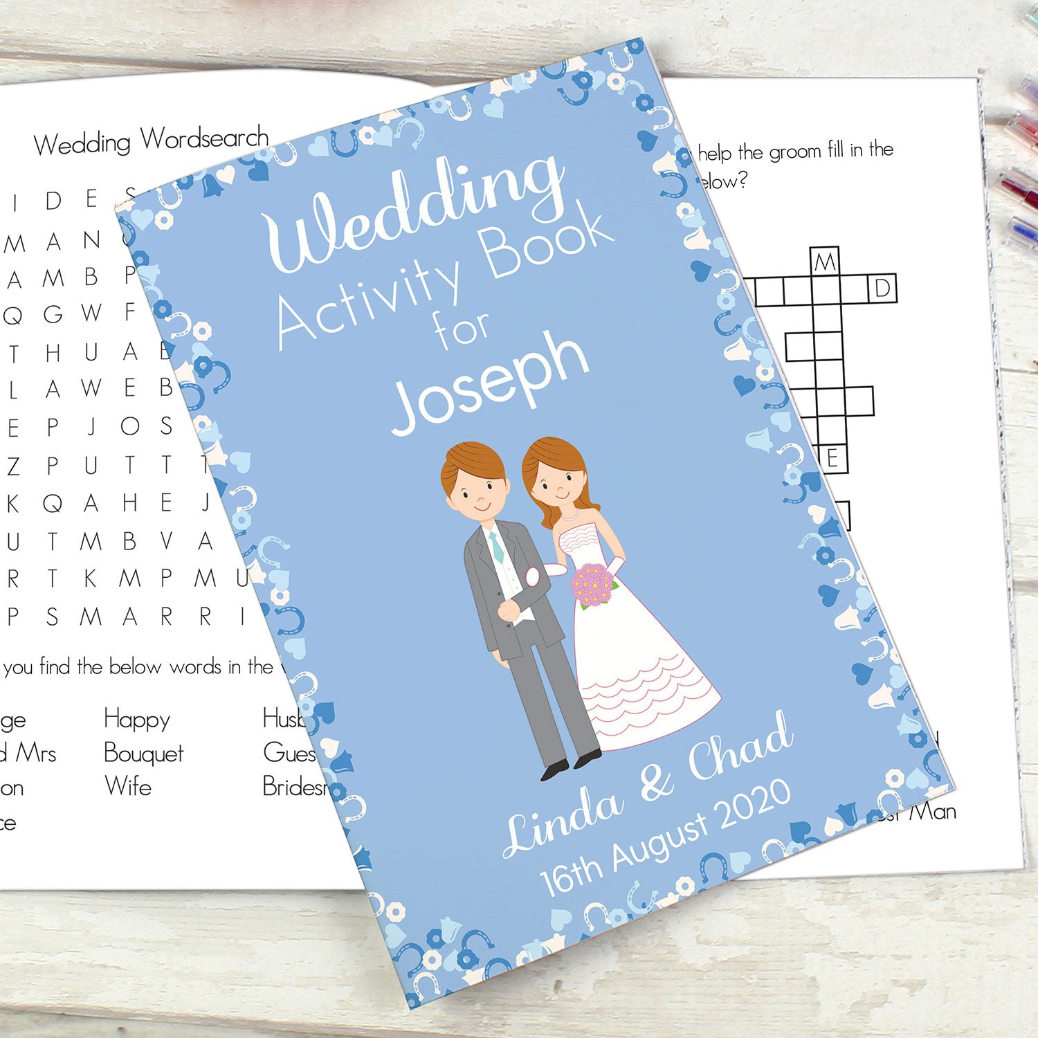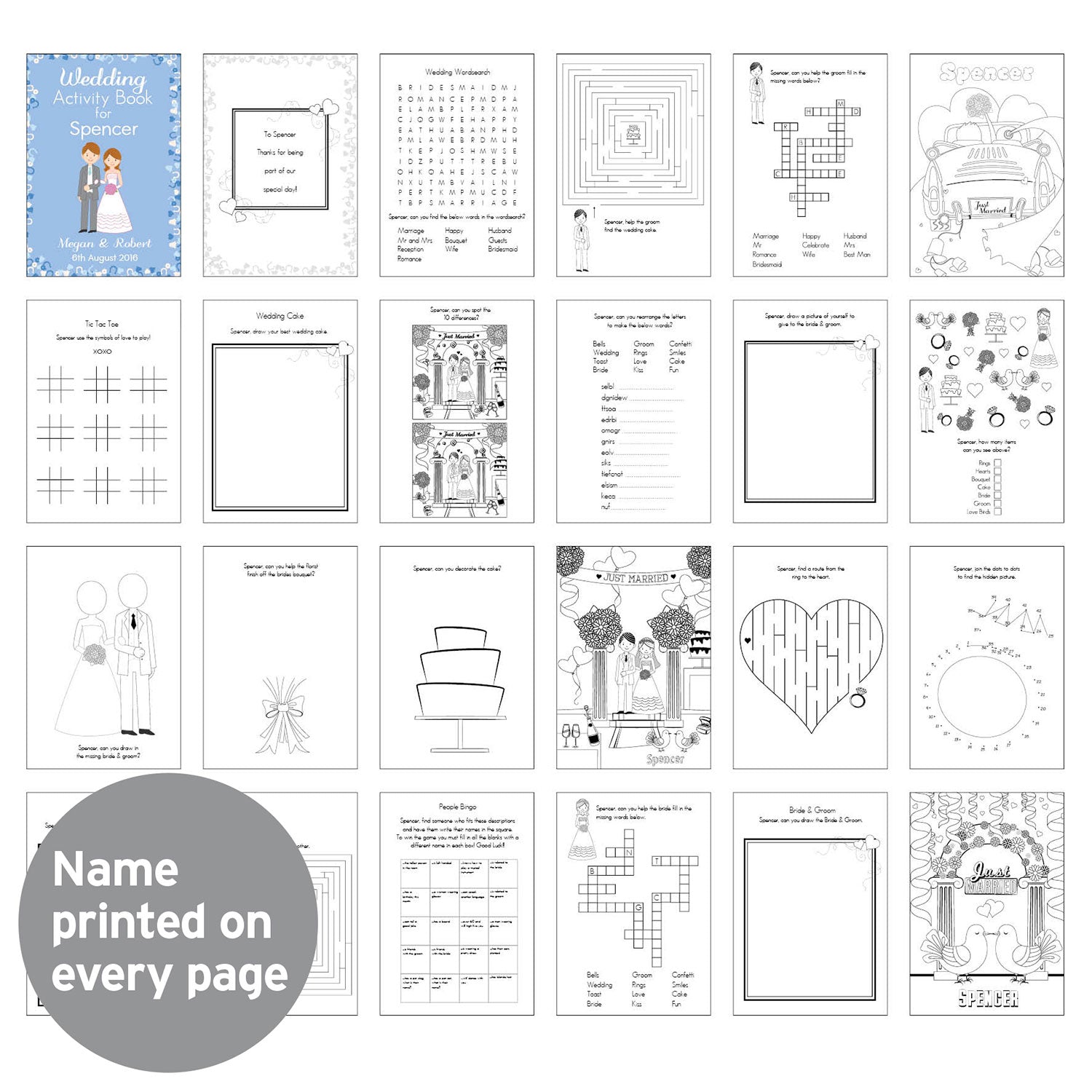 Personalise the front of this activity book with a name of up to 12 characters (this will appear on every page of the book) and then a message over 2 lines of up to 20 characters per line. The words 'Wedding Activity Book For' are fixed. You can then personalise the inside with a message over 4 lines up to 20 characters per line.