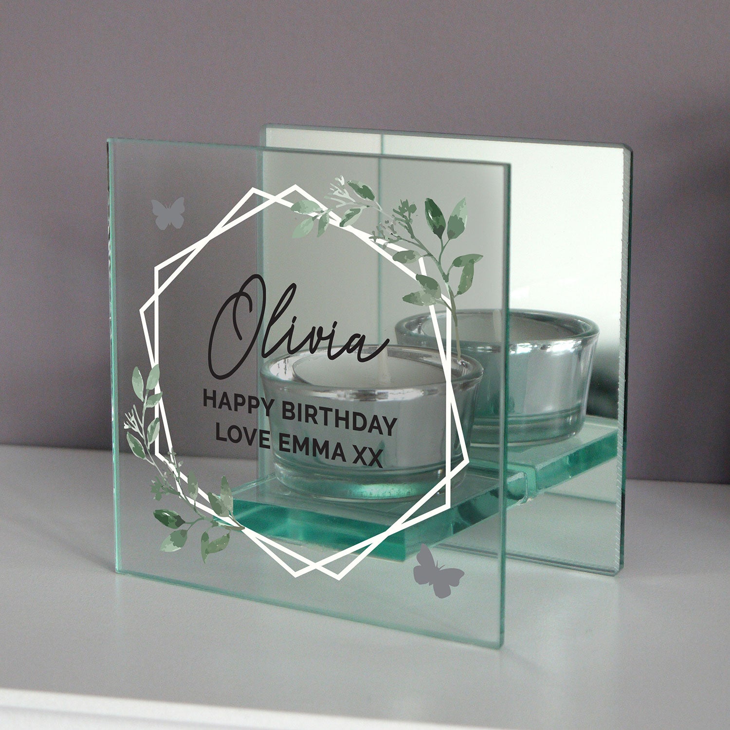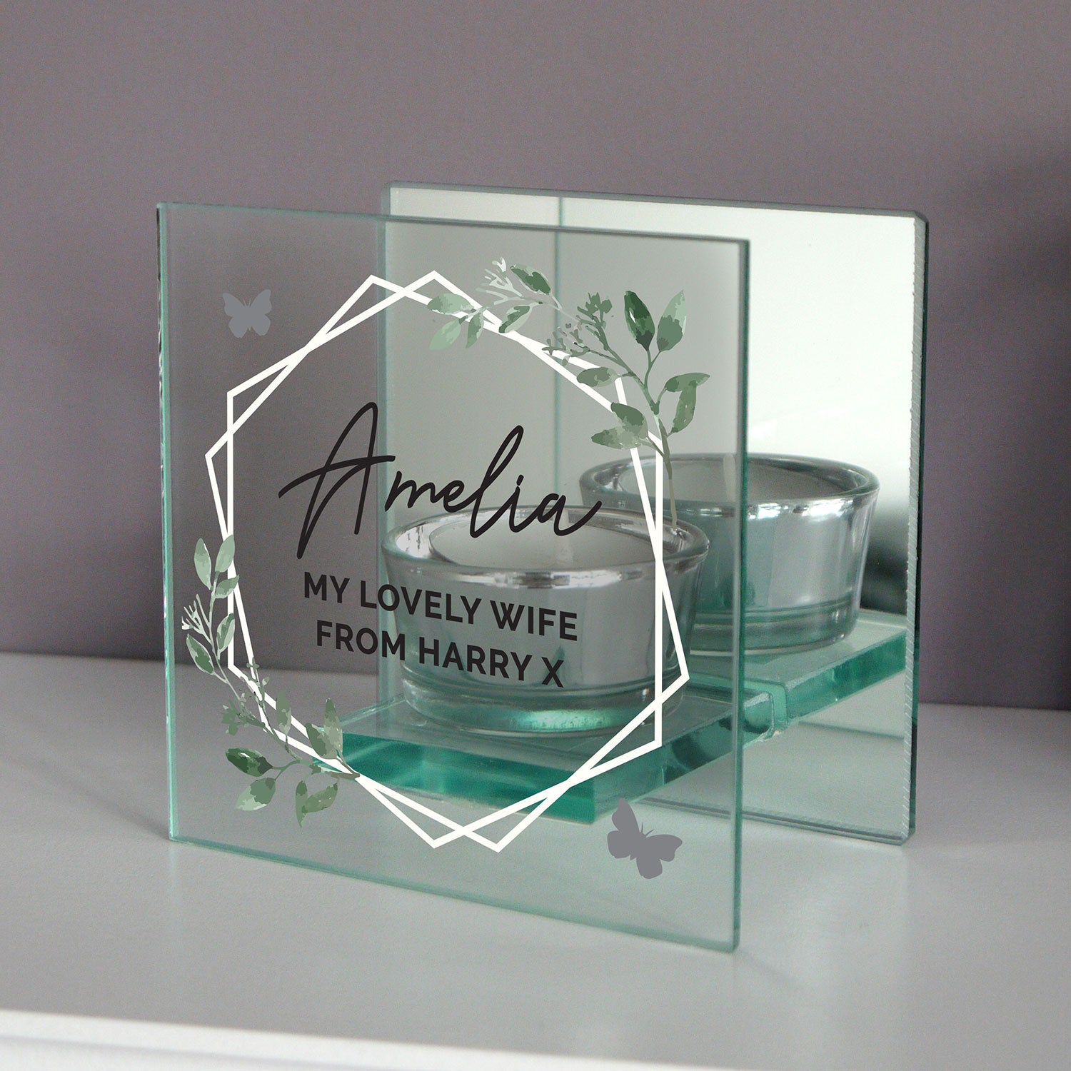 This gorgeous Personalised Mirrored Glass Tea Light Holder is a thoughtful and modern gift which will look great displayed around the home. Ideal for Mother's Day, Birthdays, Weddings.