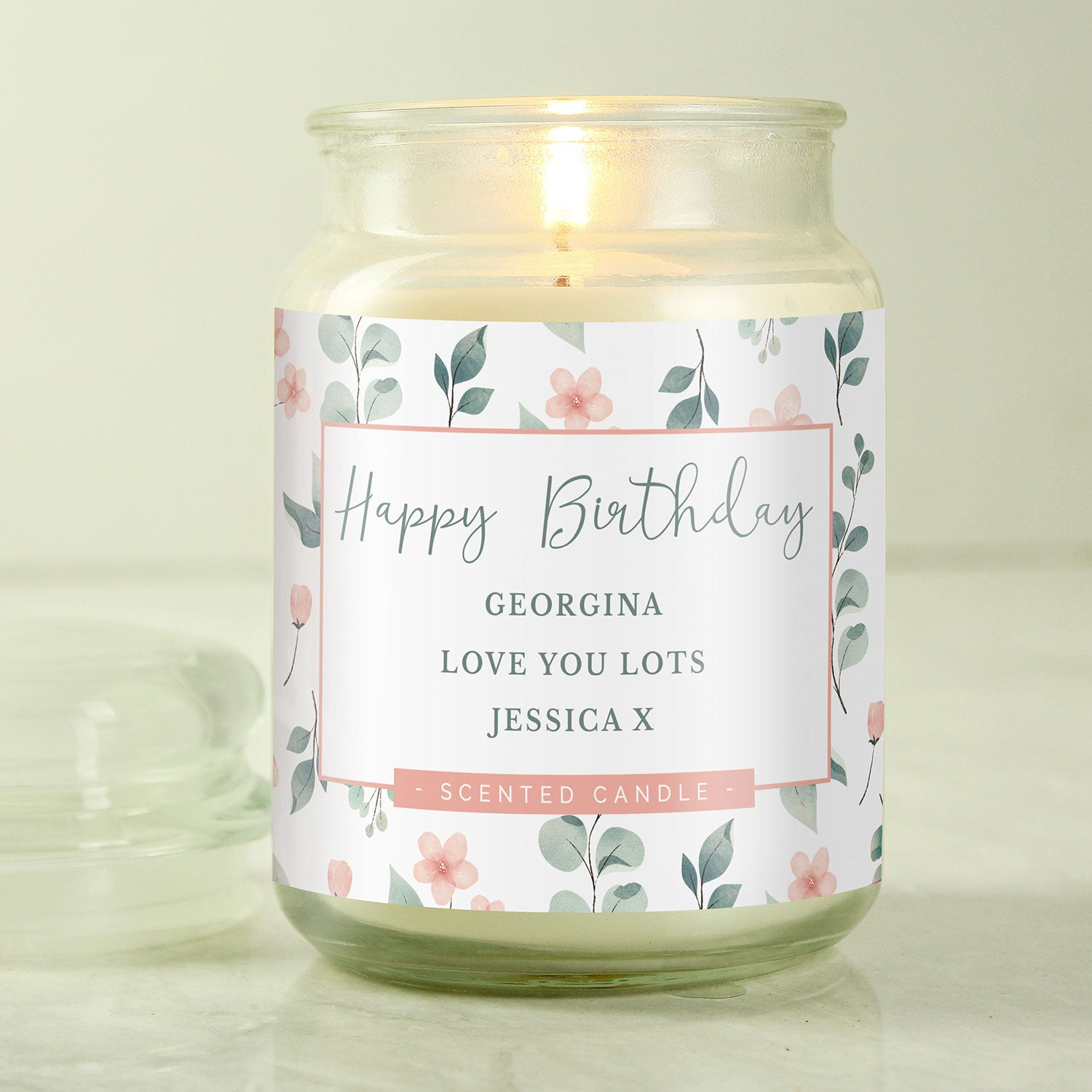 Our Personalised Floral Large Scented Jar Candle is sure to hit the mark! Burn time is approx 110 hours. Made from paraffin wax. Perfect for any occasion.