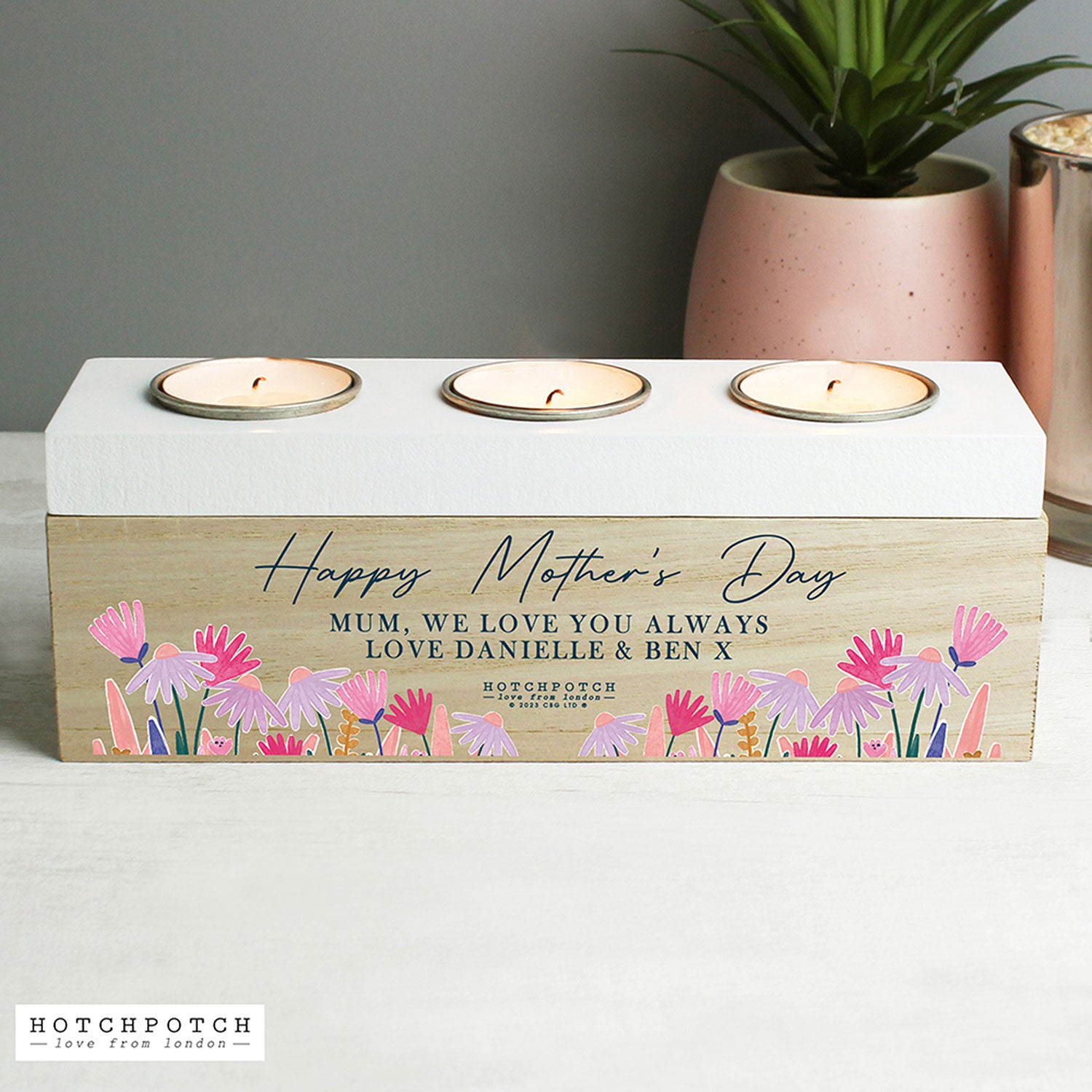 A lovely way to show someone how much they mean to you! This wooden, shabby chic box with the sweet Hotchpotch floral design can store a small amount of tea lights or trinkets. Three tea lights can be displayed on top of the box, creating a unique feature for any shelf or mantelpiece.