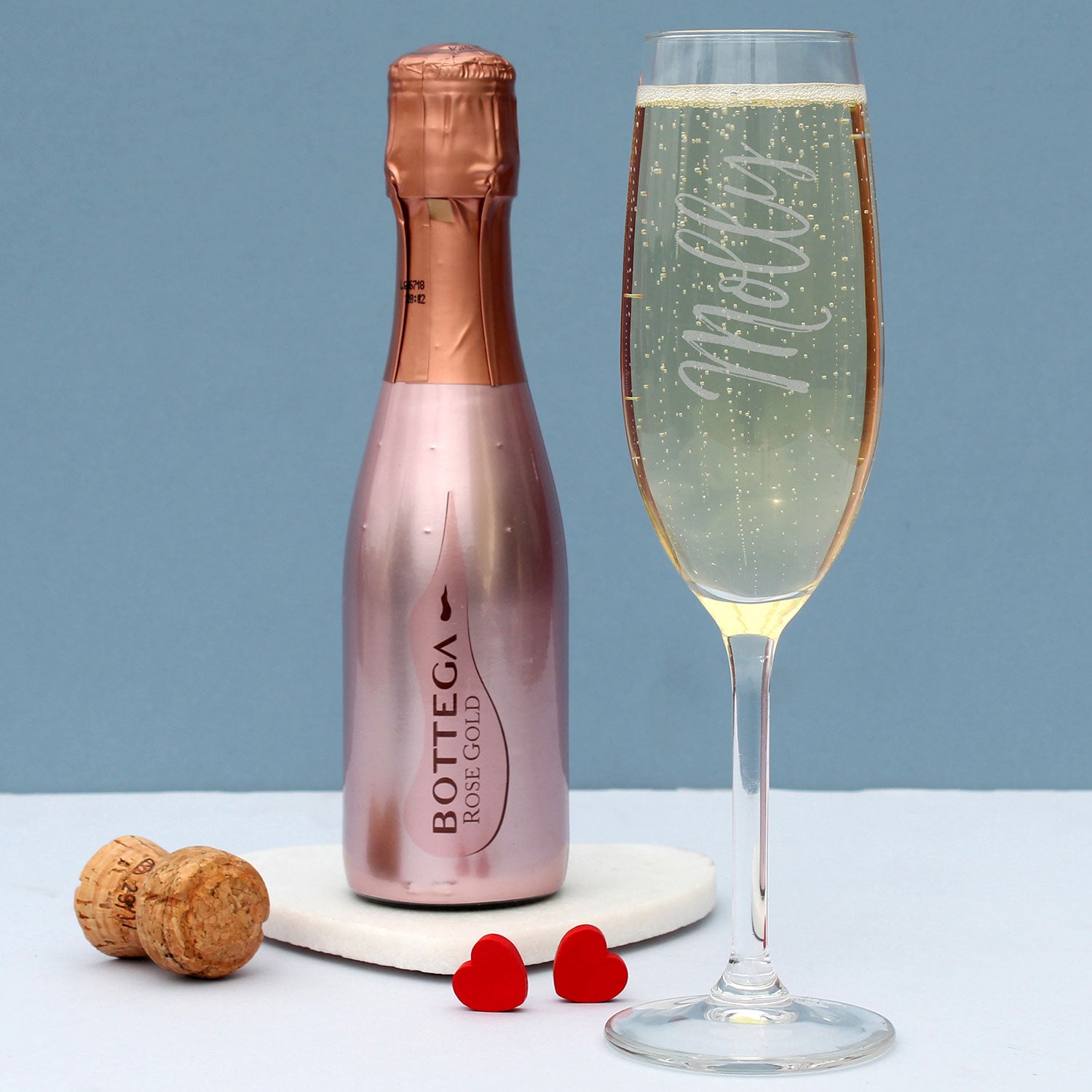 Personalised Rose Gold Bottega Prosecco & Flute Set