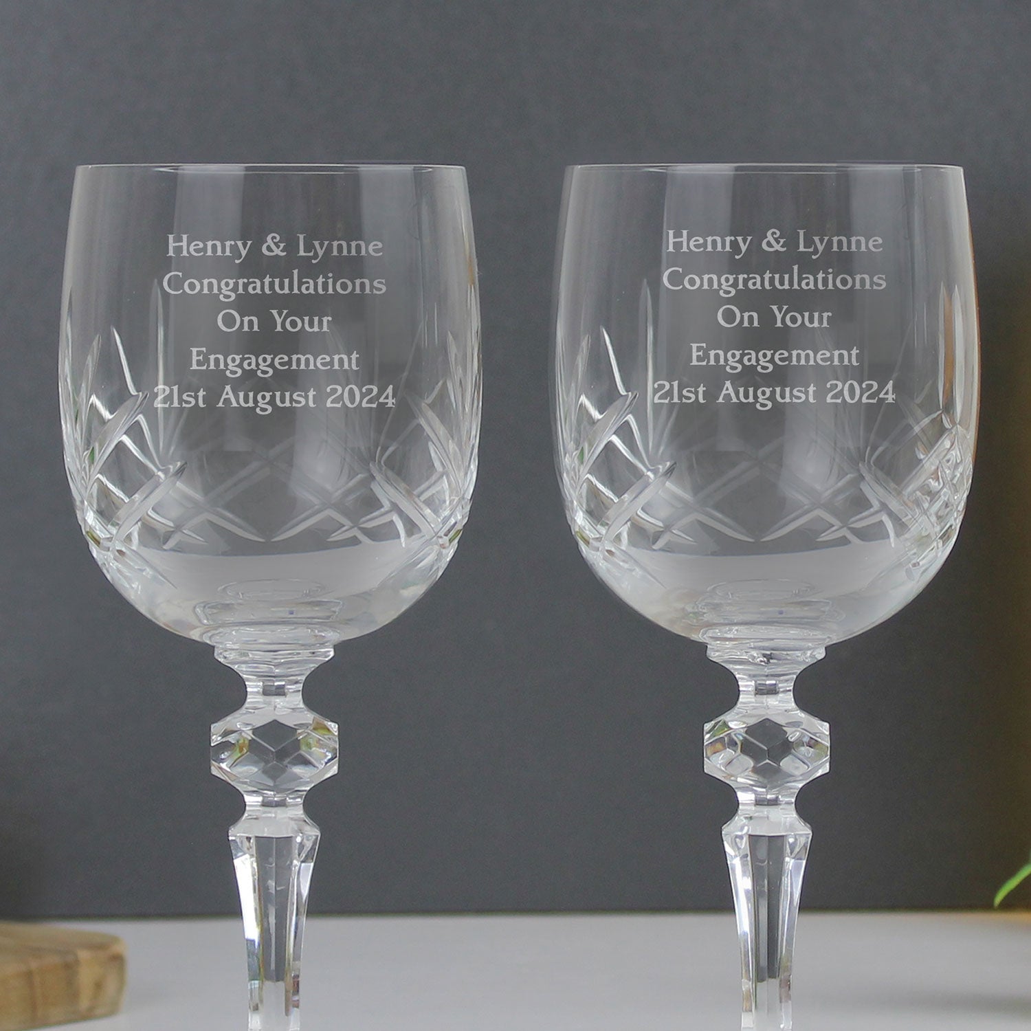 Each glass can be personalised with any message over 5 lines on each glass and up to 20 characters per line. Each glass measures - 20.3cm x 8cm x 8cm Glasses are lead free.