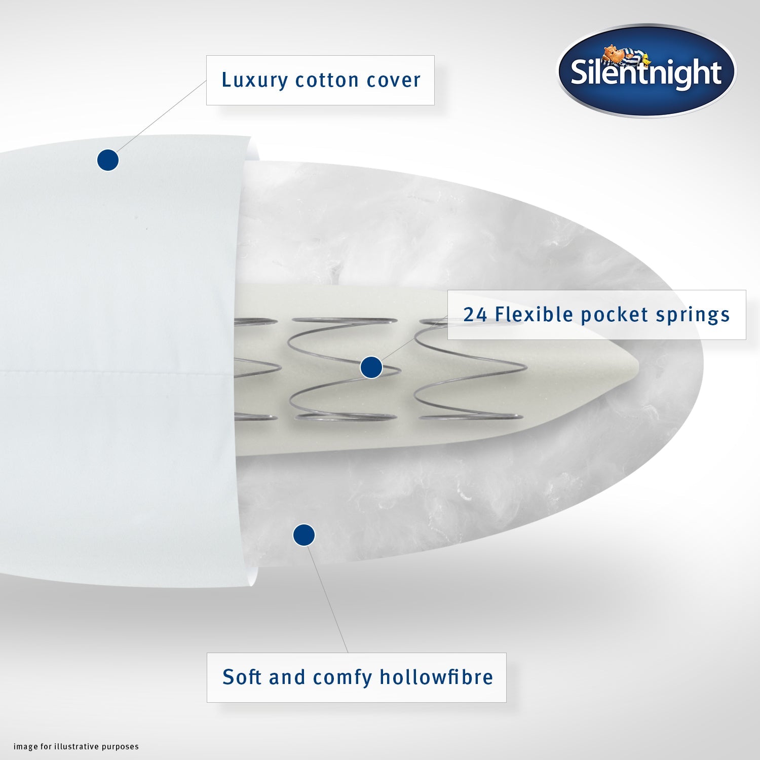 Relieve pressure points as you sleep with responsive pocket springs that will keep you comfortable and supported. The Silentnight Pocket Sprung Pillow features miniature pocket springs that lie at the heart of the pillow.