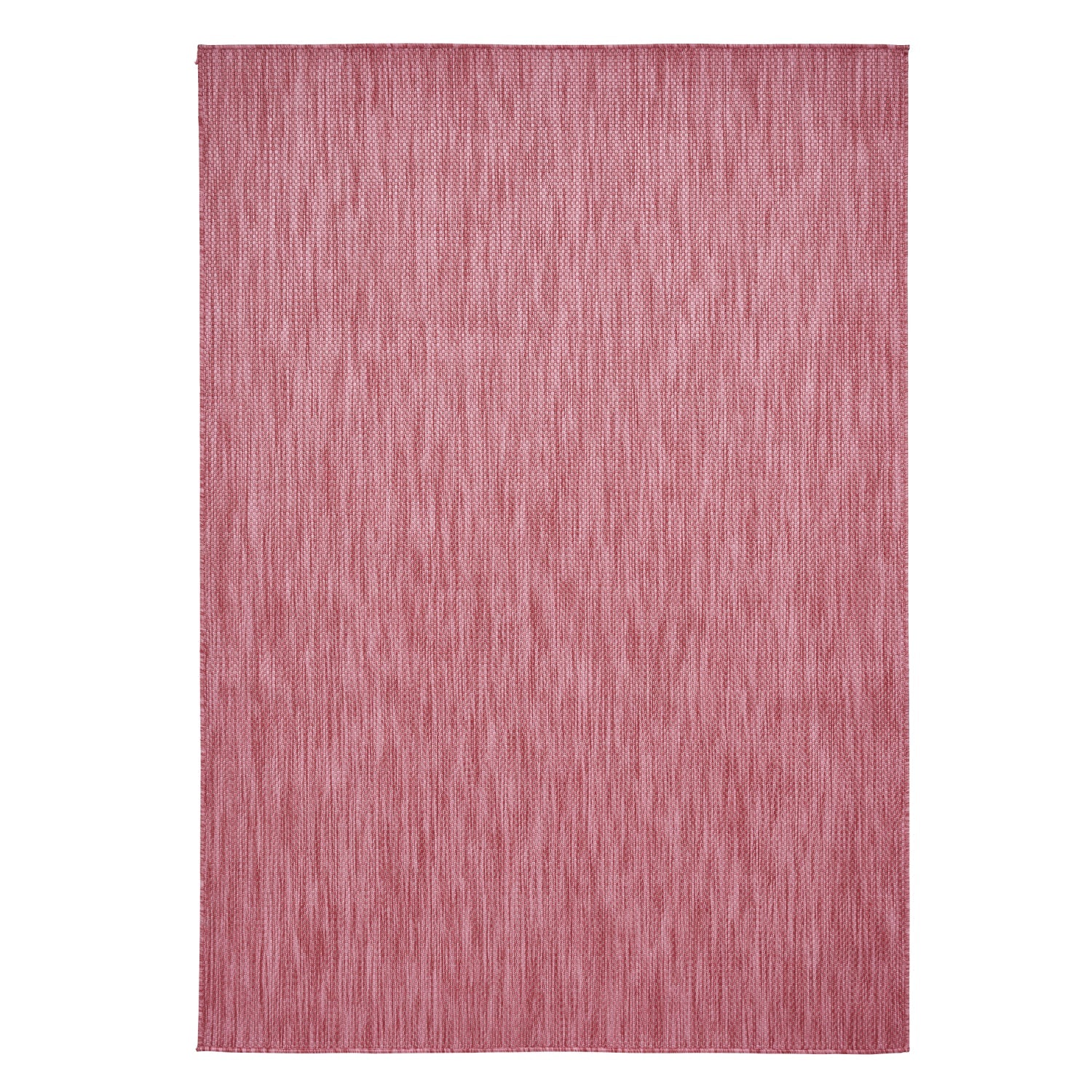 Introducing the POP! Outdoors Flat Weave Plain Rug in Red, the perfect addition to any outdoor patio.