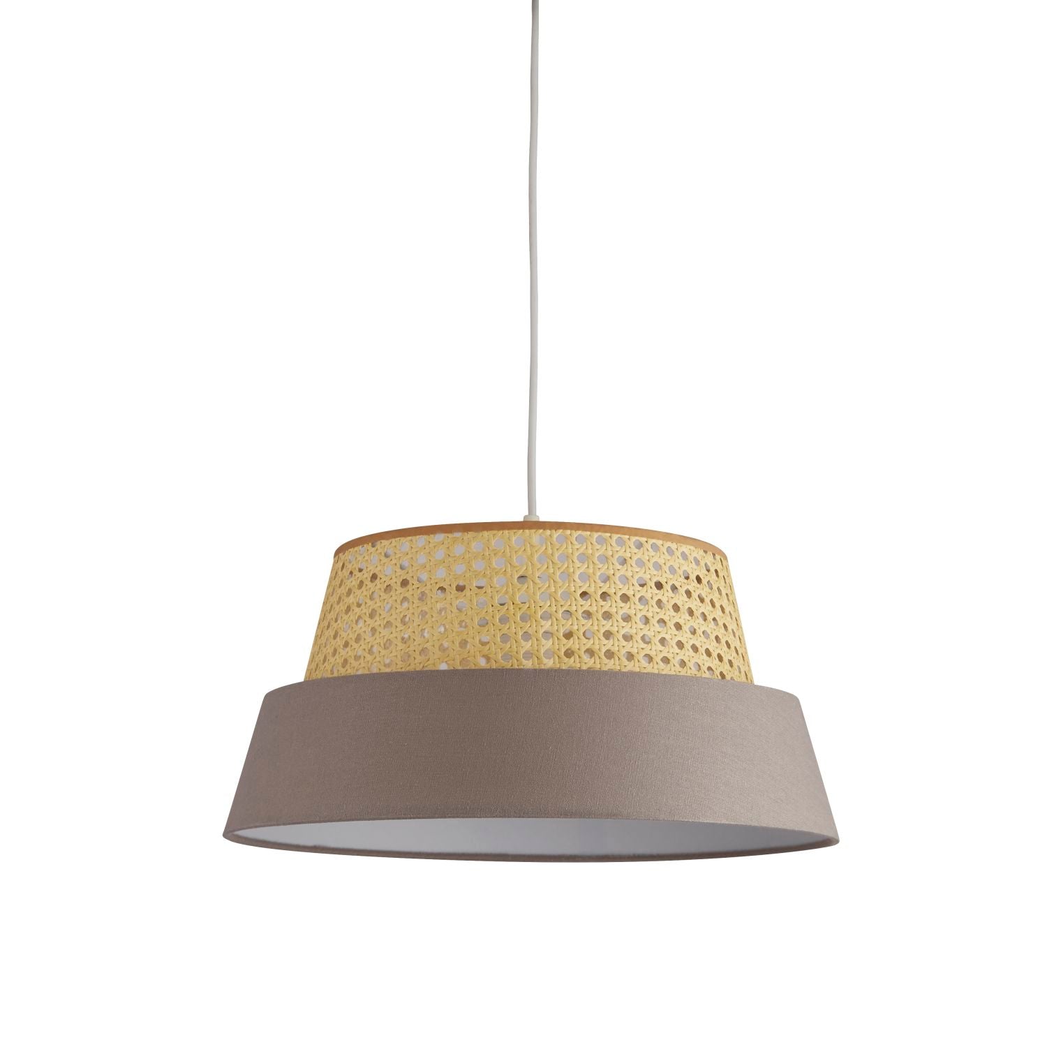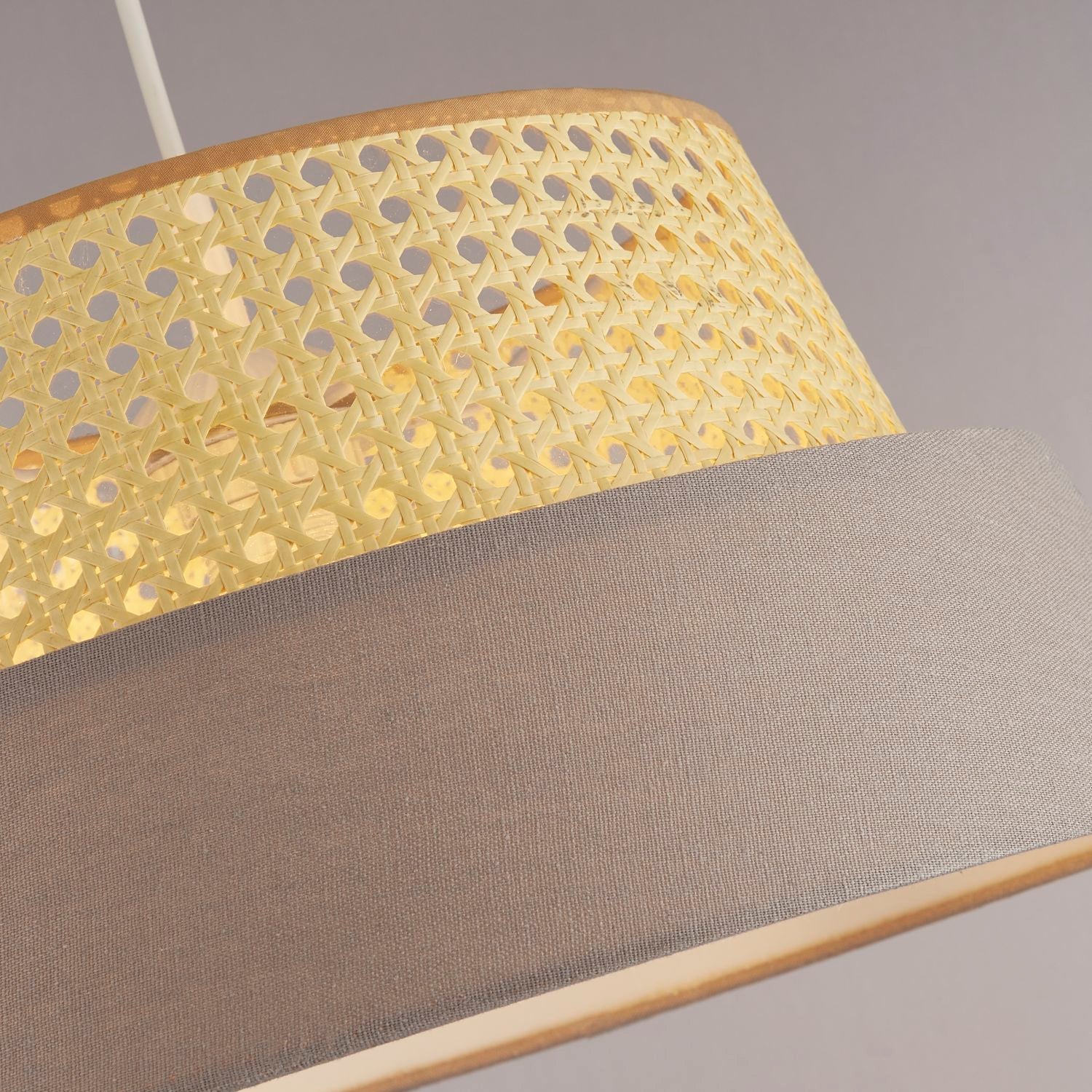 Introducing the Rattan and Grey Linen Light Shade. This classic and timeless light shade brings a sense of warmth and natural beauty to your home with its exquisite design crafted from rattan and grey linen.