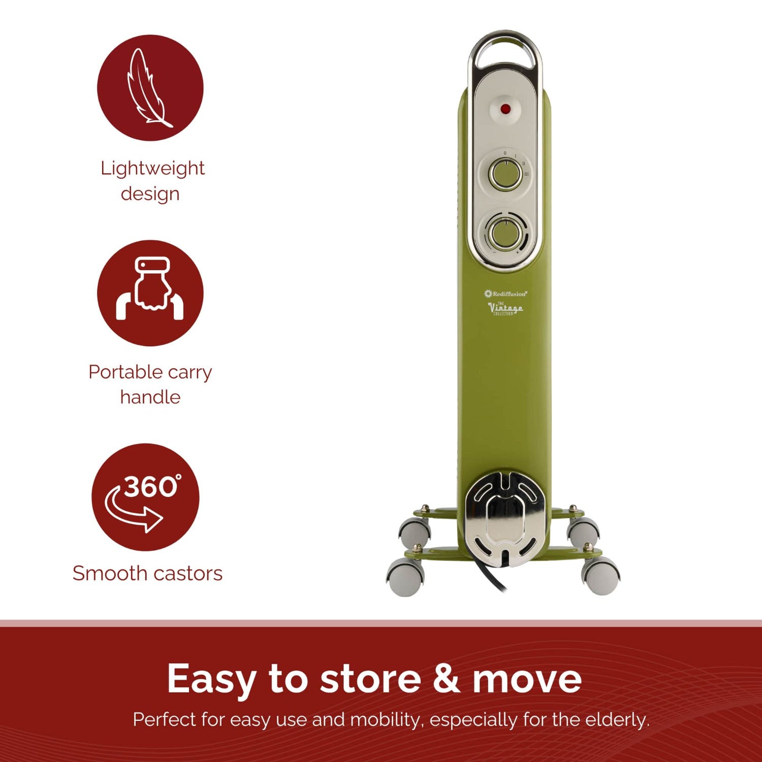Rediffusion Vintage Green 9 Fin Oil Filled Radiator