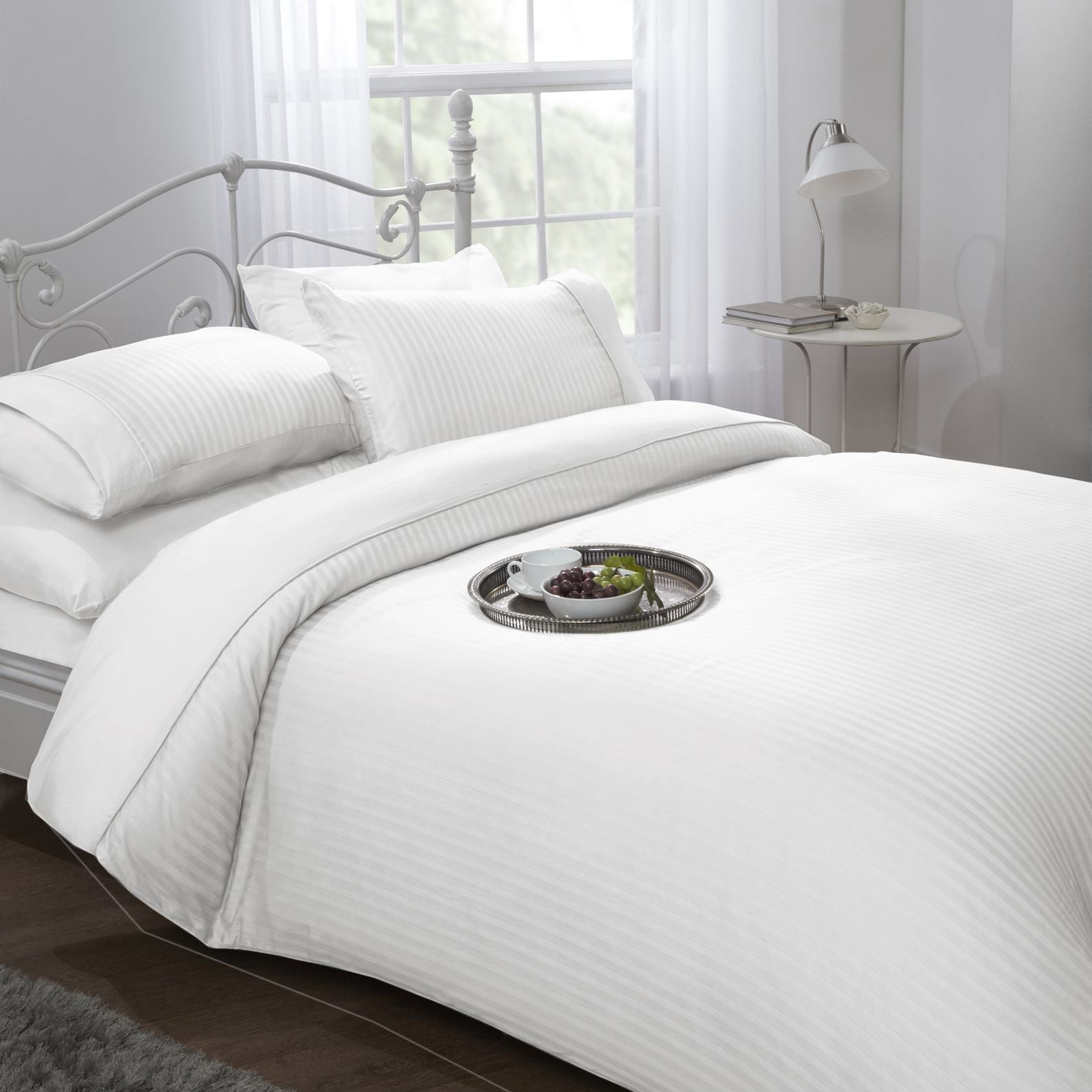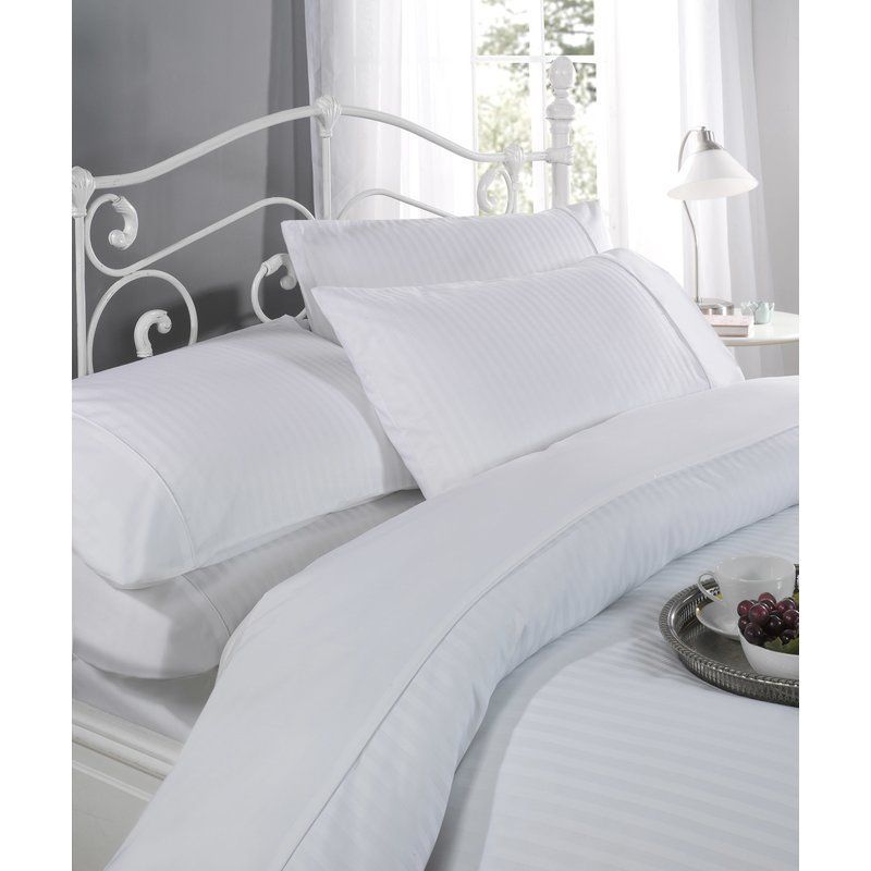 Welcome to the world of luxury! Our White Ritz 300 Thread Count Satin Stripe Duvet Set offers simple hotel style and comfort for a good night's sleep.