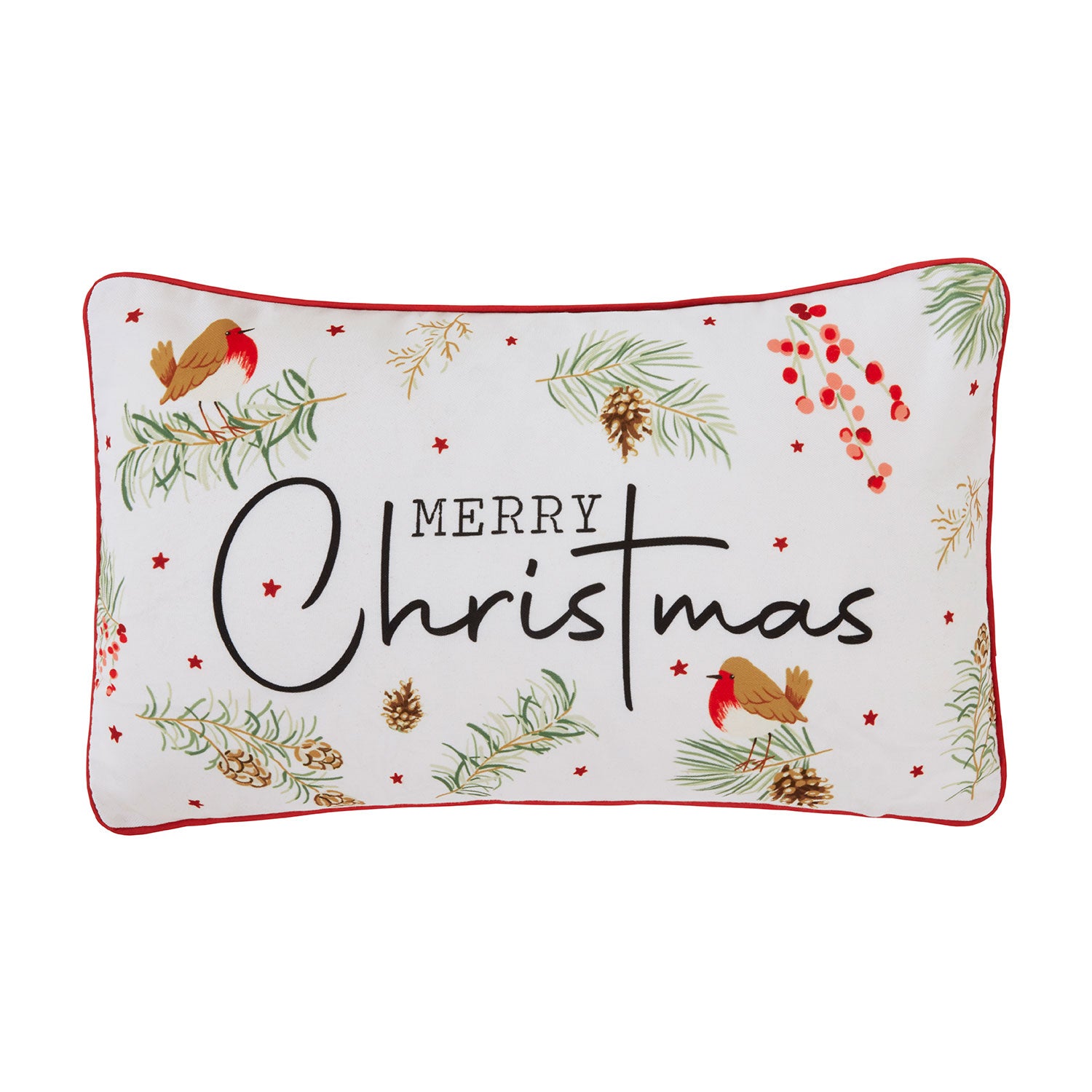 Merry Christmas Robins Printed Canvas Cushion (30cm x 50cm)