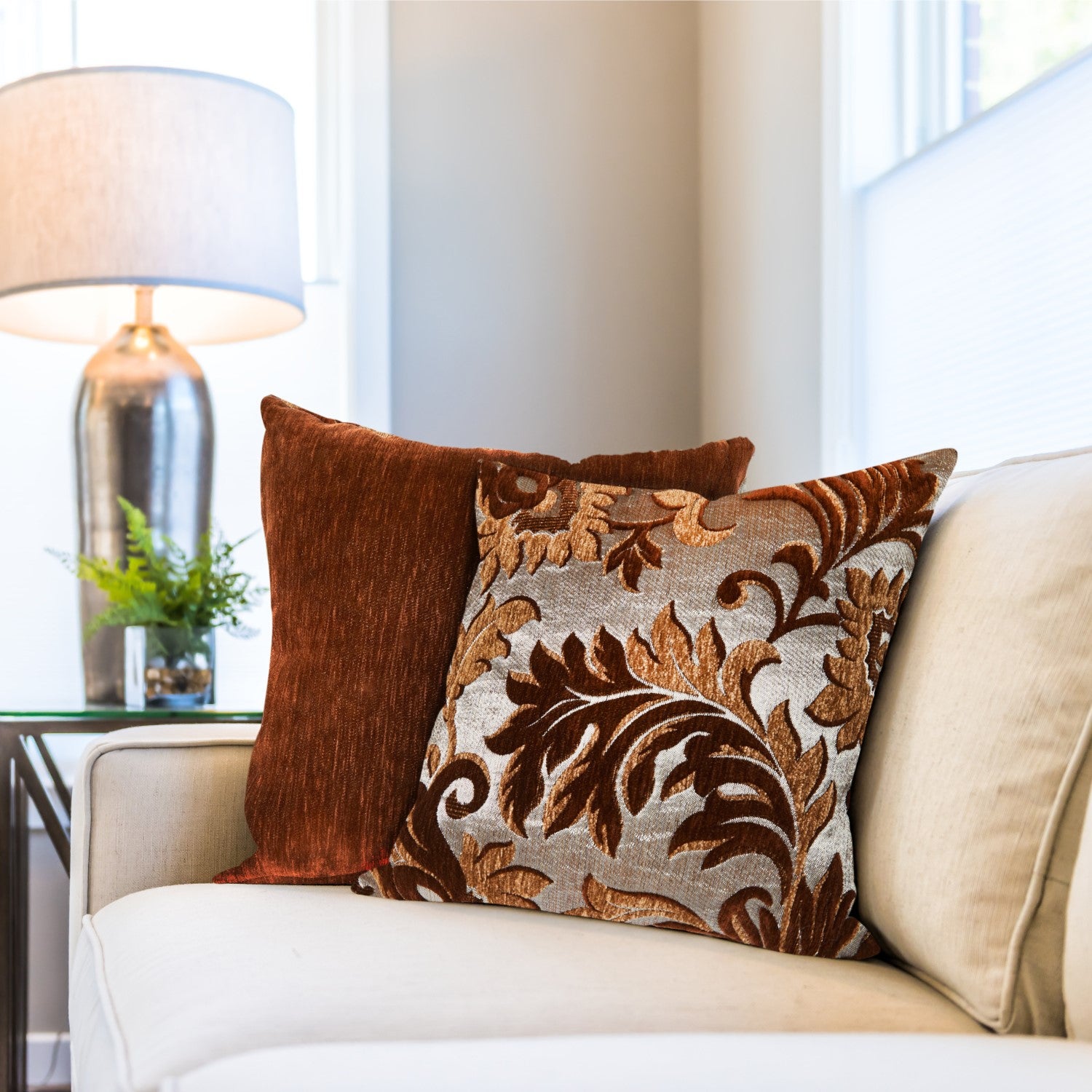 Rome Chocolate Brown Damask Chenille Cushion Cover Pair