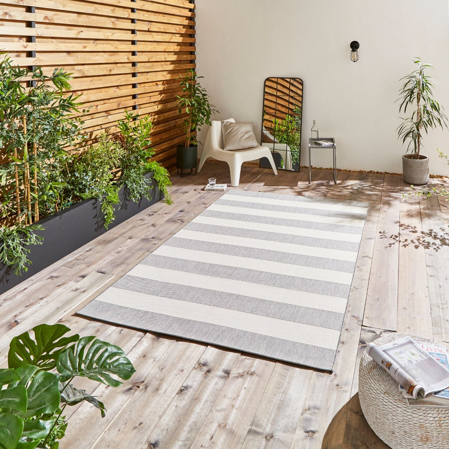 Santa Monica 48644 Grey and Light Beige Stripe Outdoor Rug