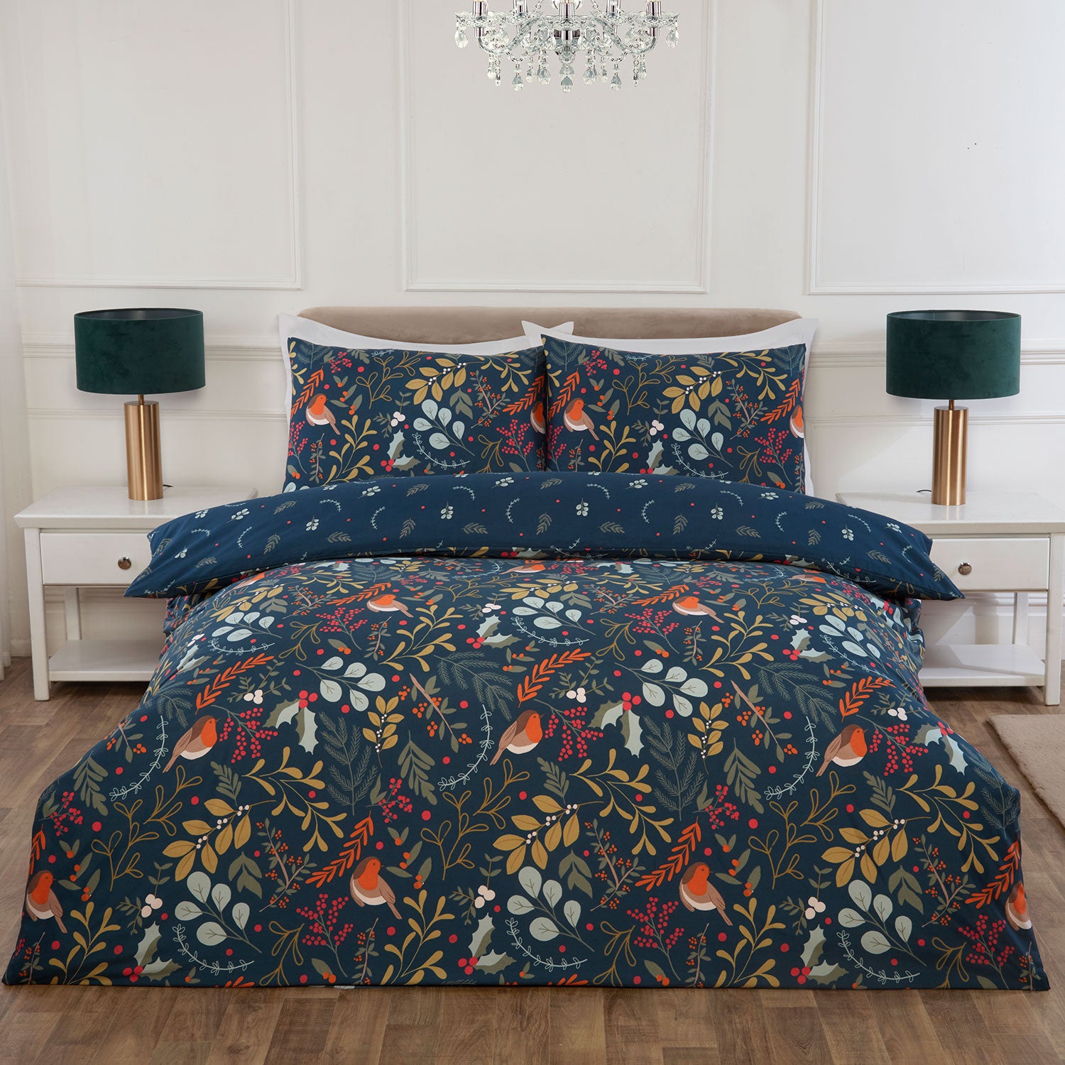 Turn your bedroom into a winter wonderland with our enchanting Scandi-inspired Teal bedding set! Adorned with delicate holly leaves, whimsical branches, and charming little robins, this cosy masterpiece brings the beauty of nature indoors.