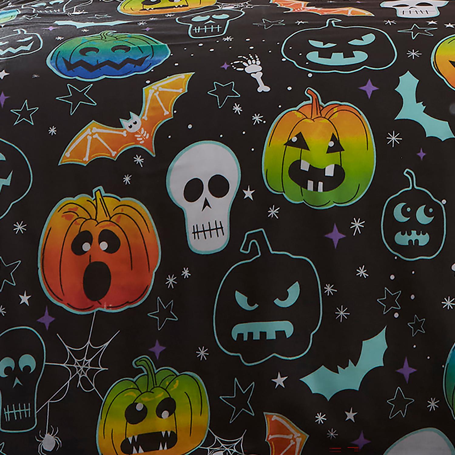 Discover the enchanting Scary Pumpkins duvet cover set. Immerse yourself in the spirit of Halloween with this spook-tacular set that will ignite your imagination and spark joy. Imagine glow-in-the-dark pumpkins and skulls dancing across a midnight black background, casting an eerie glow that will send delightful chills down your spine!