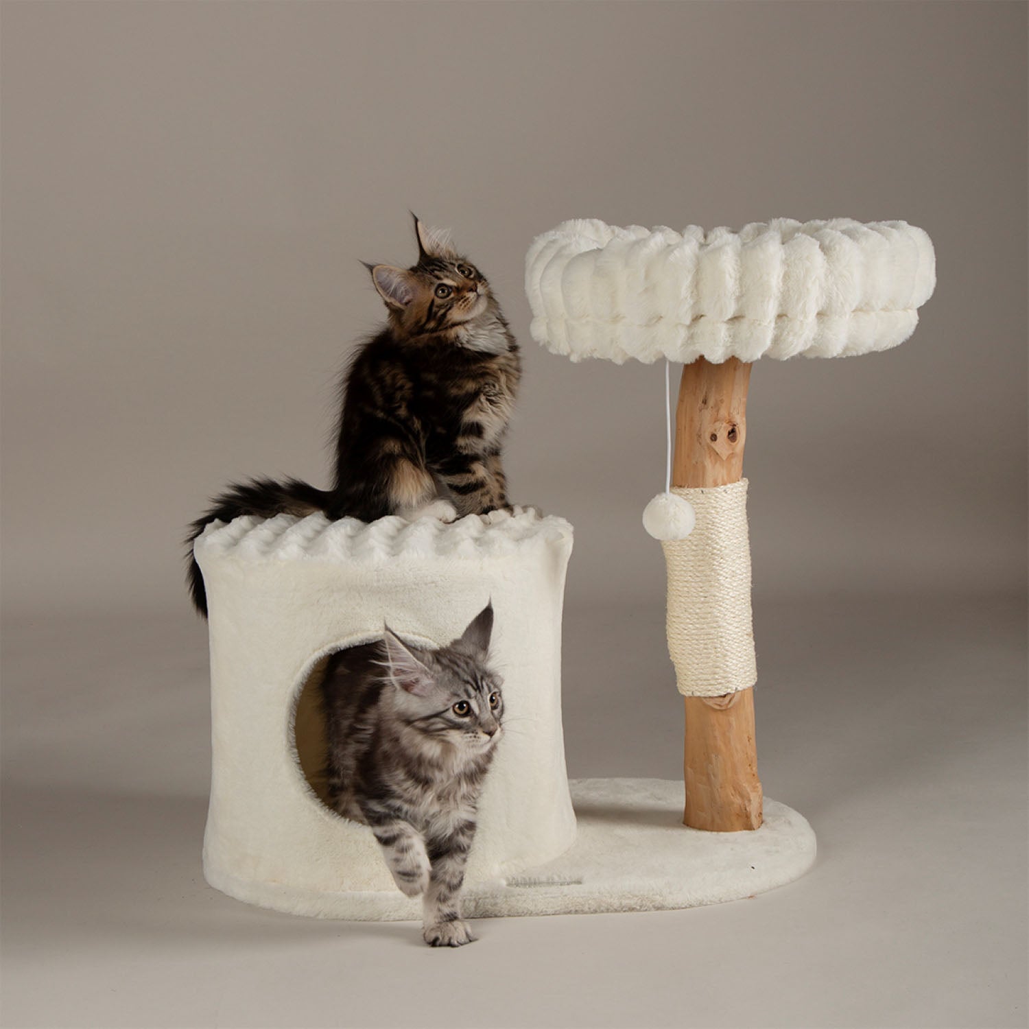 Perfect for multi-cat homes or cats who love space, this tree offers two extra-large beds for curling up together or stretching out alone. A semi-enclosed cave provides a quiet retreat, while the scratch post combines solid pear wood and sisal for daily claw care.